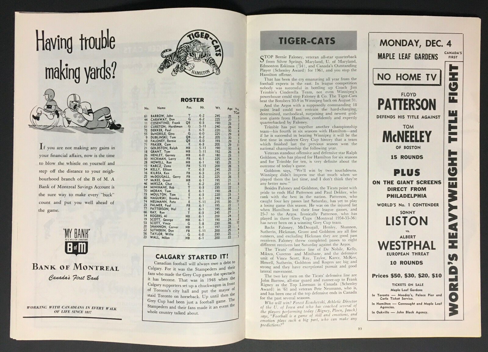 - 1961 Grey Cup program at Exhibition Stadium, Toronto