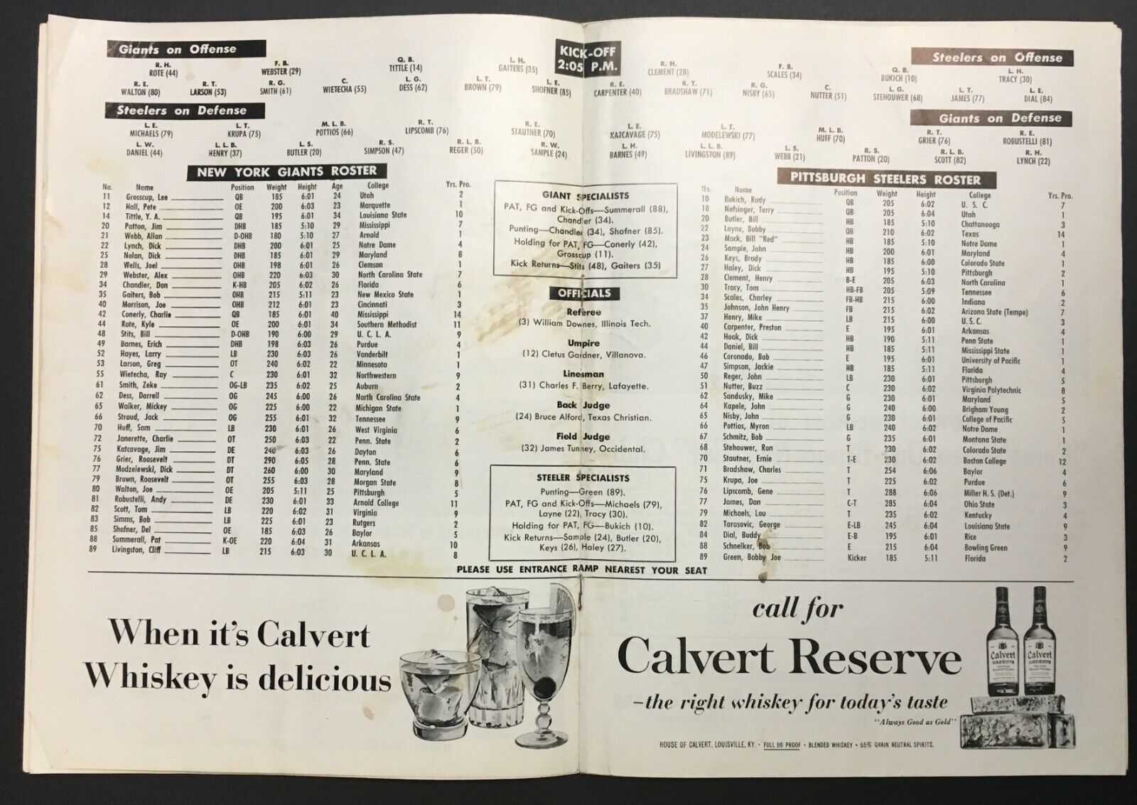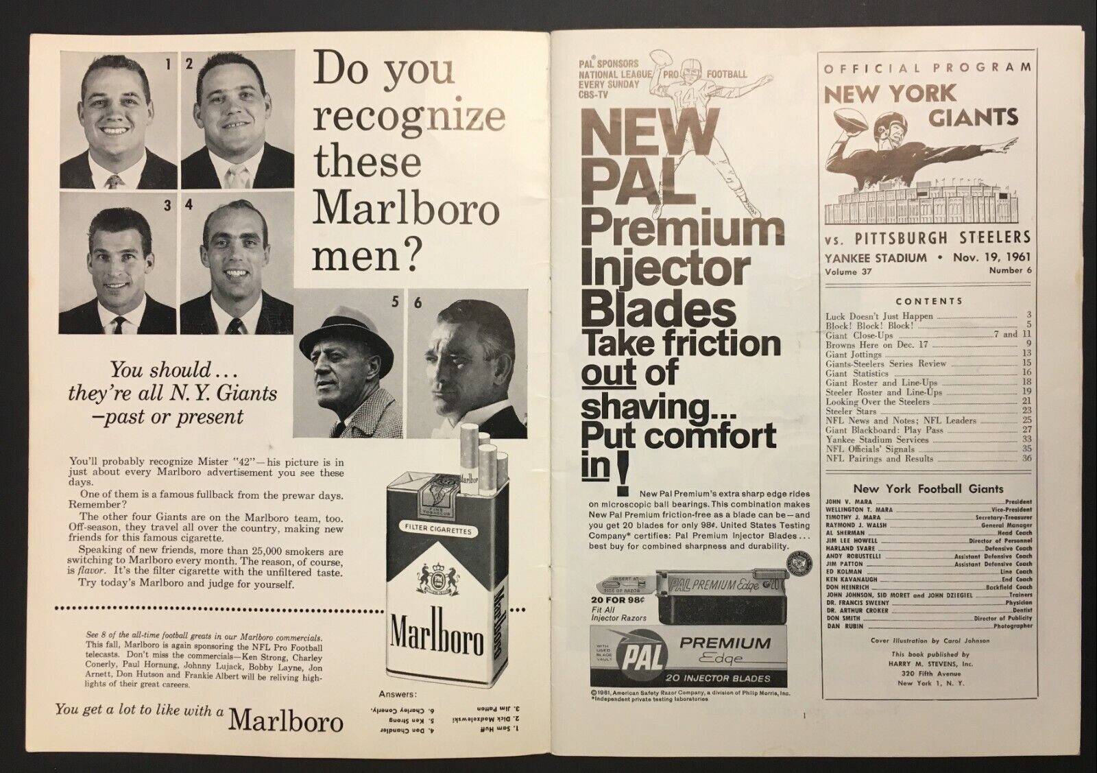 - Original November 19, 1961 Yankee Stadium NFL football program