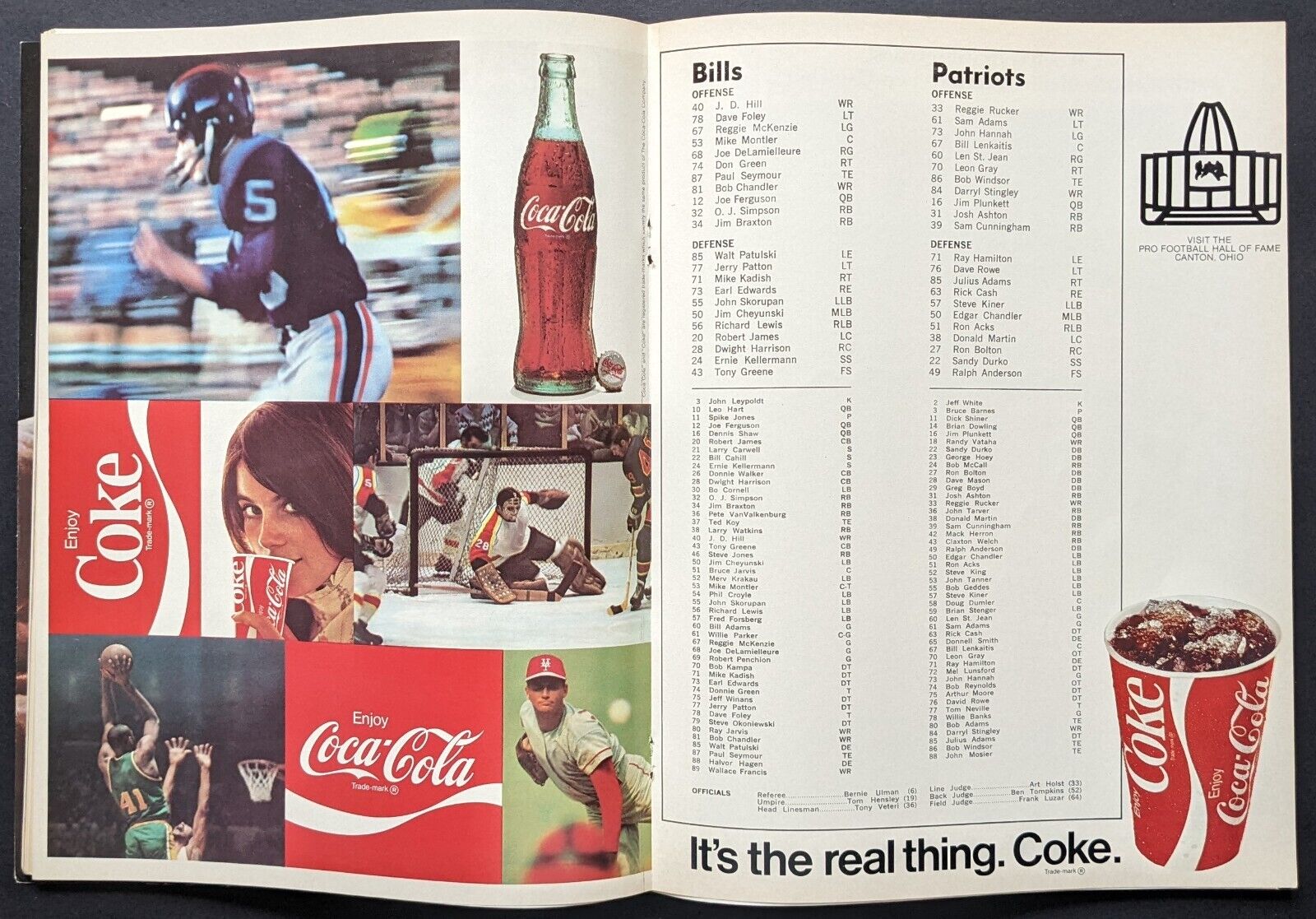 - December 9th, 1973 New England Patriots @ Buffalo Bills Complete and Unscored Program