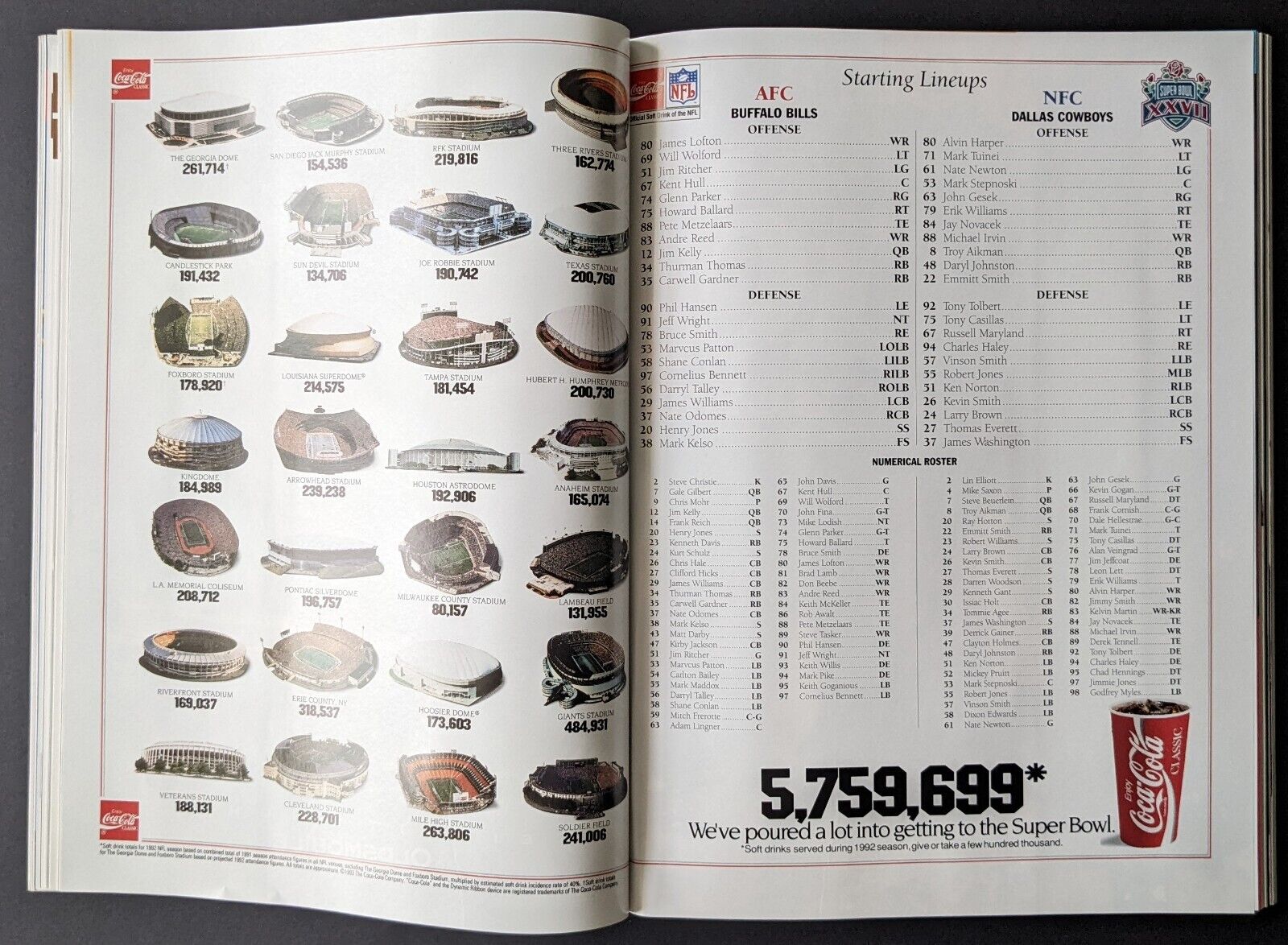 1993 Super Bowl XXVII Program + Game Ticket NFL Football Bills vs Cowboys