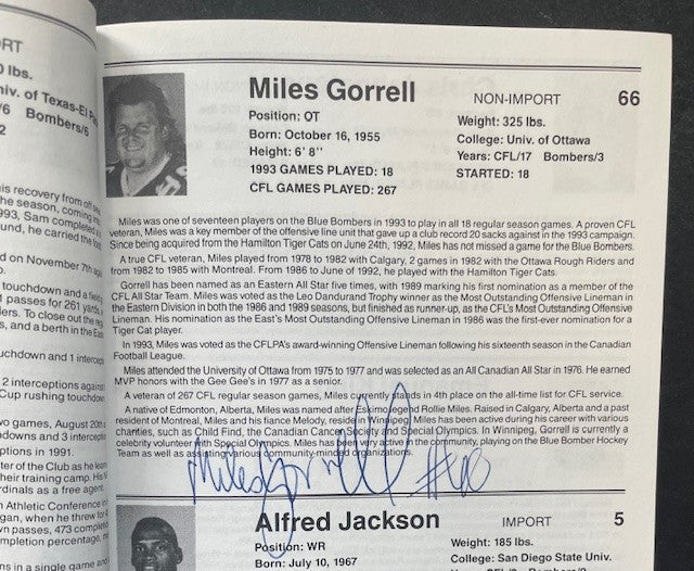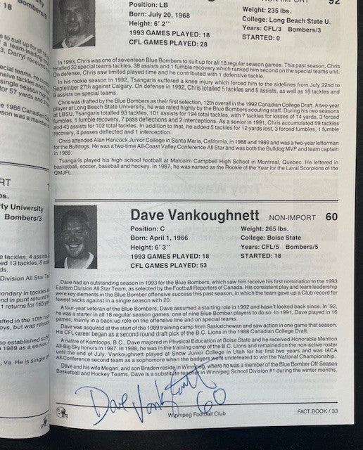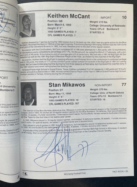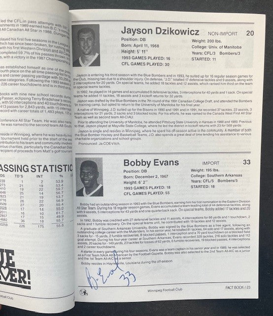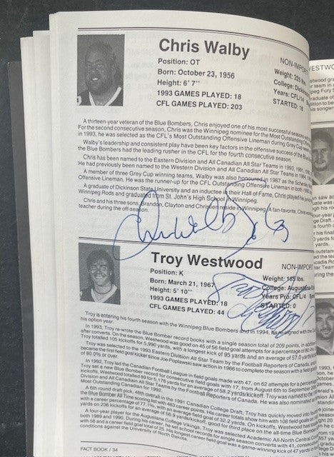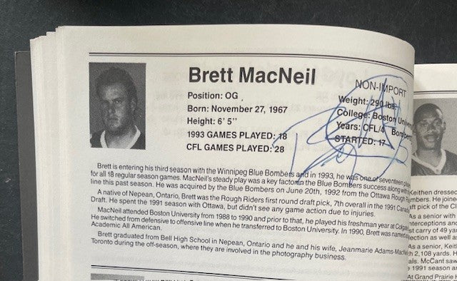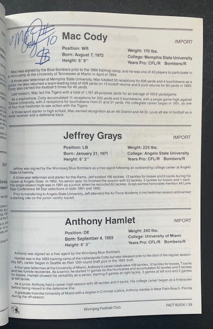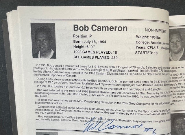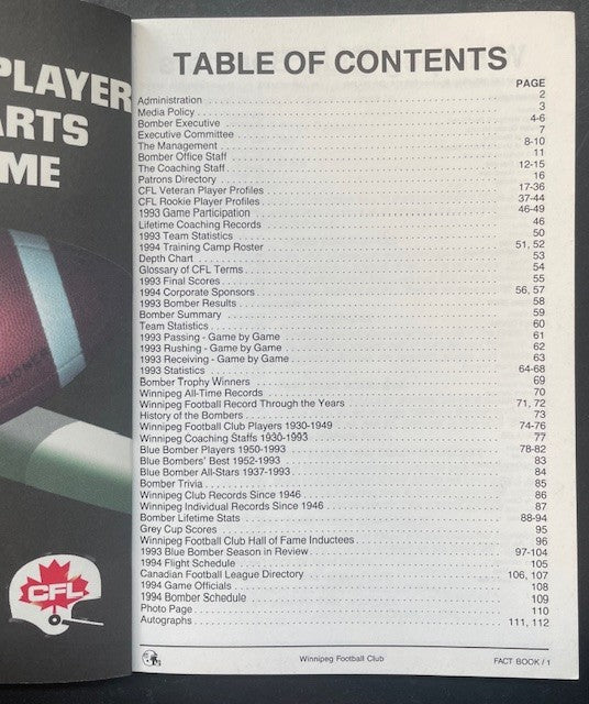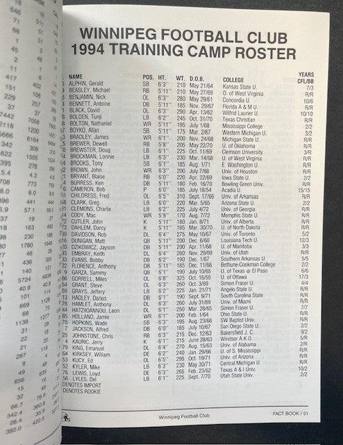 - 1994 Winnipeg Blue Bombers CFL media guide