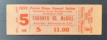 - Unused ticket from Nov. 5, 1938 football game. McGill beats University of Toronto