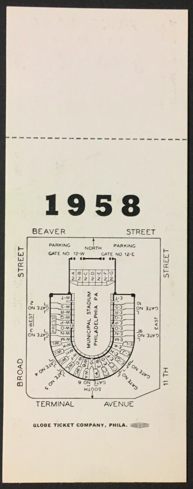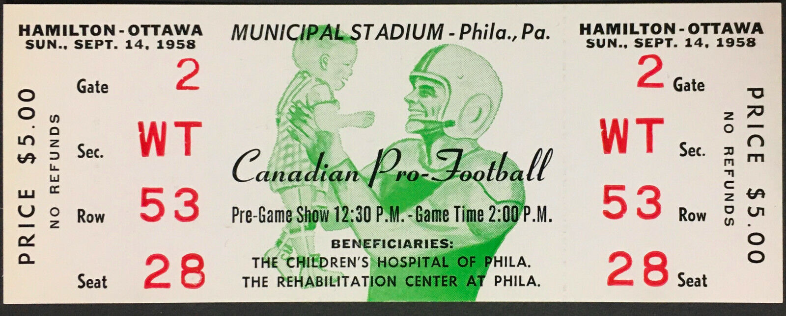 • September 14, 1958 CFL football ticket in Philadelphia USA