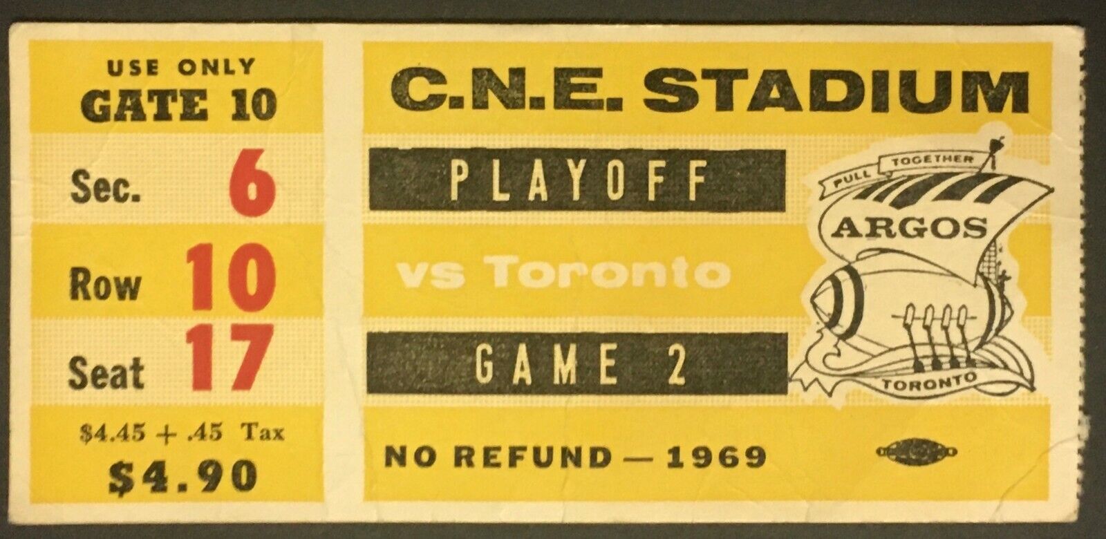 - November 16, 1969 C.N.E. Stadium CFL playoff football game 2 ticket