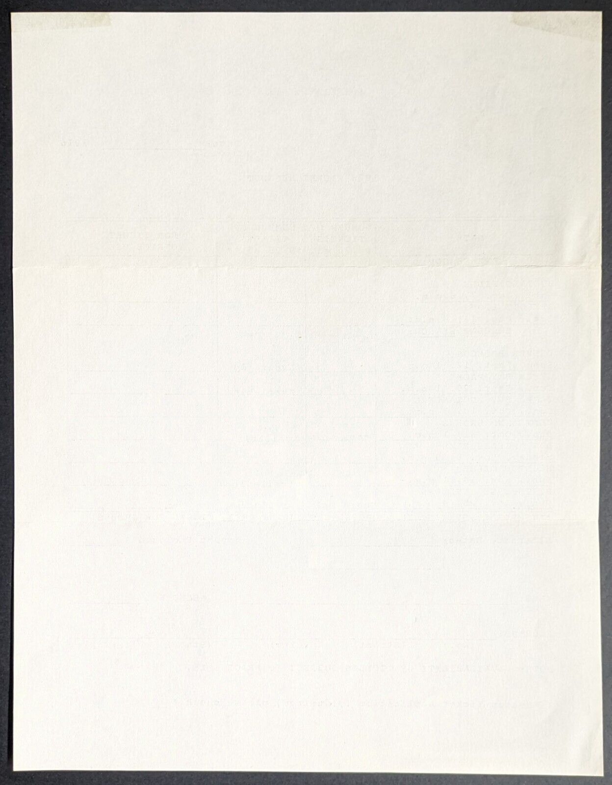 - Excellent condition; schedules show little to no sign of handling wear, letter has creasing due to folding as well as some material transfer from tape on top corners