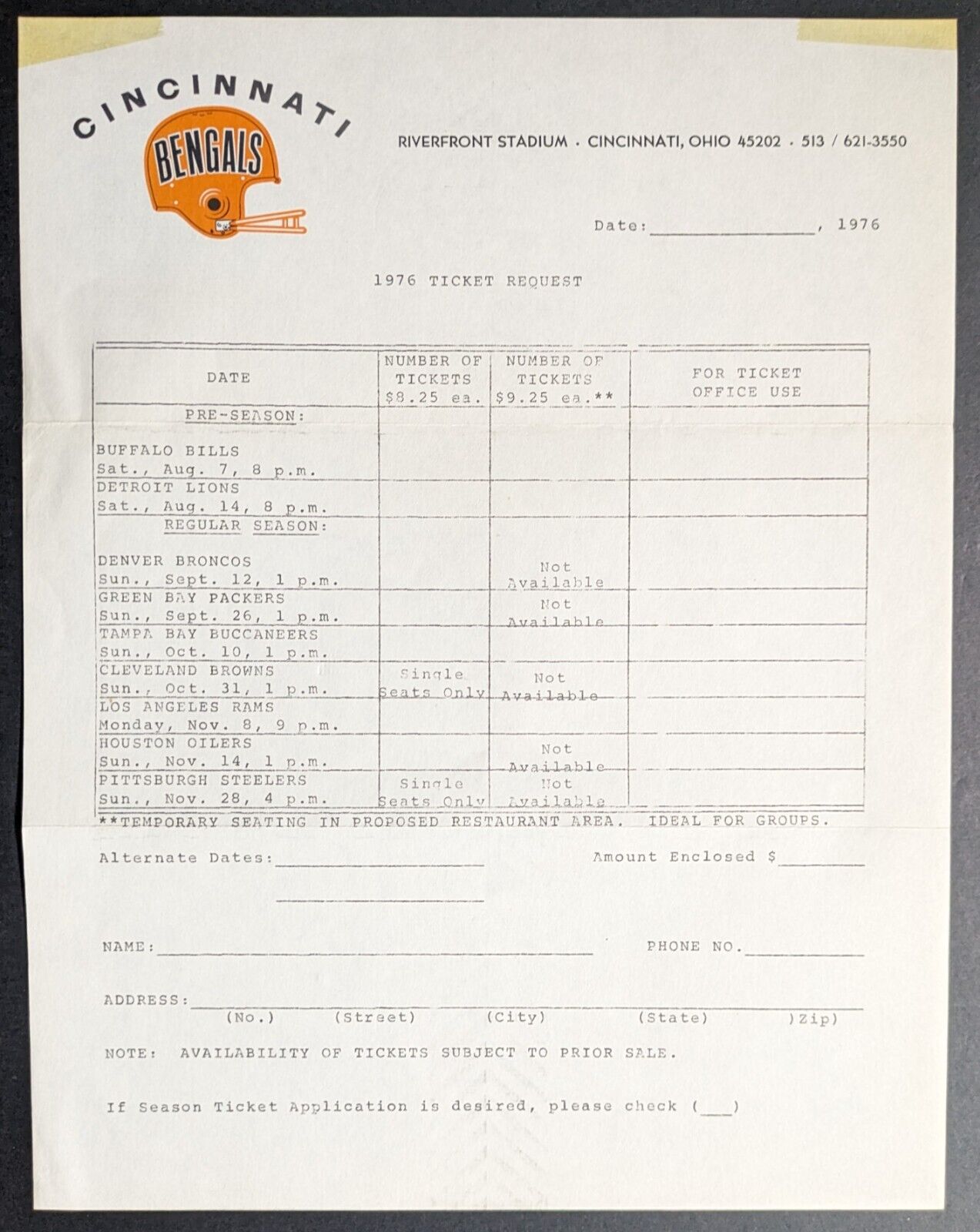 - 1976 Cincinnati Bengals Pocket Schedules + Tickets Order Form + Envelope