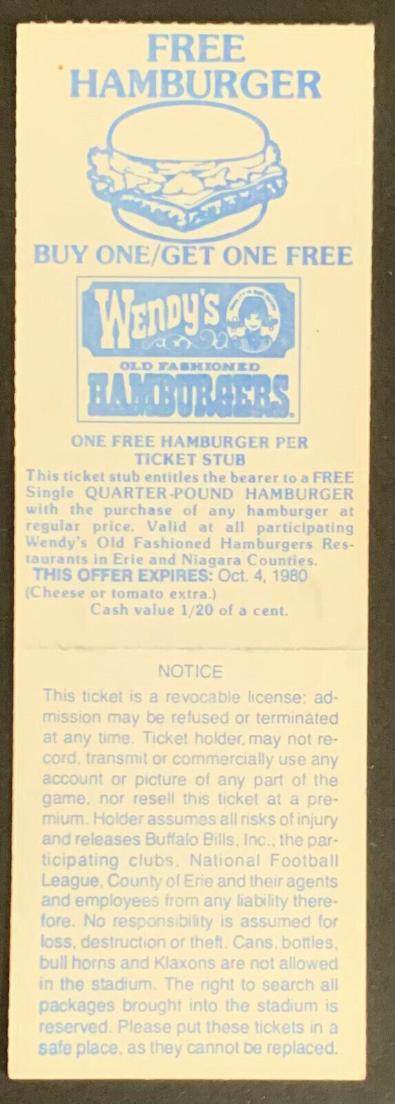 - September 28, 1980 NFL football game ticket from Rich Stadium