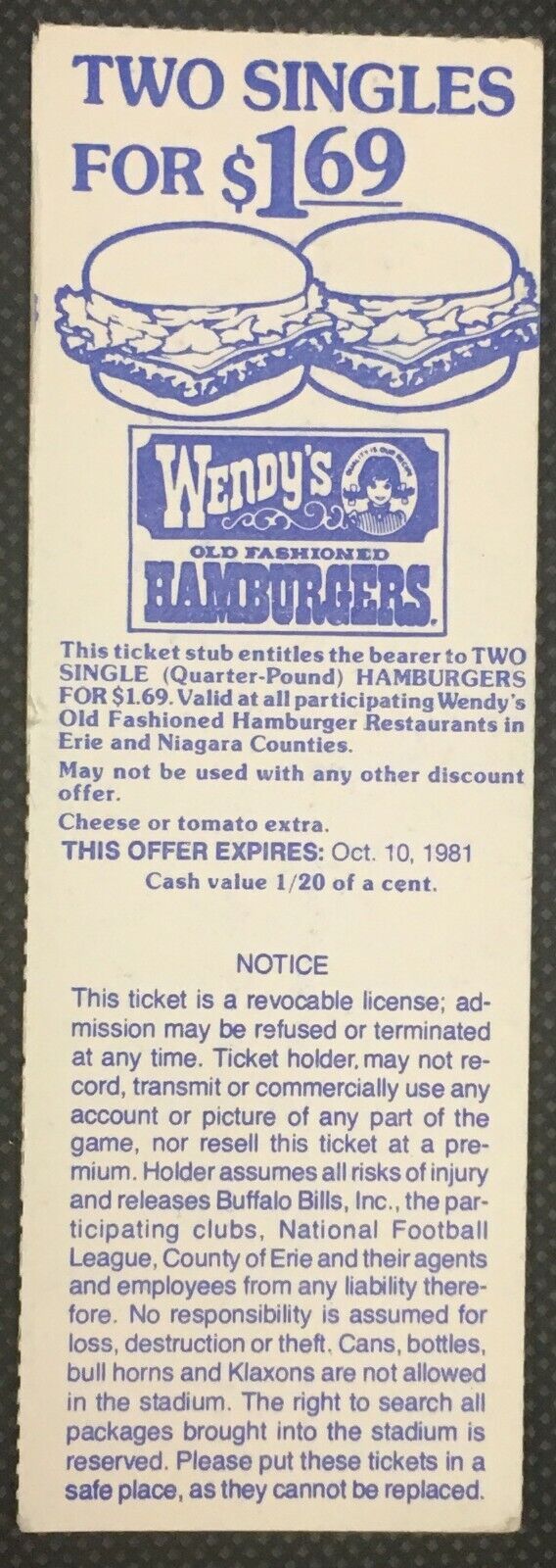 - 1981 NFL football ticket at Rich Stadium, New York