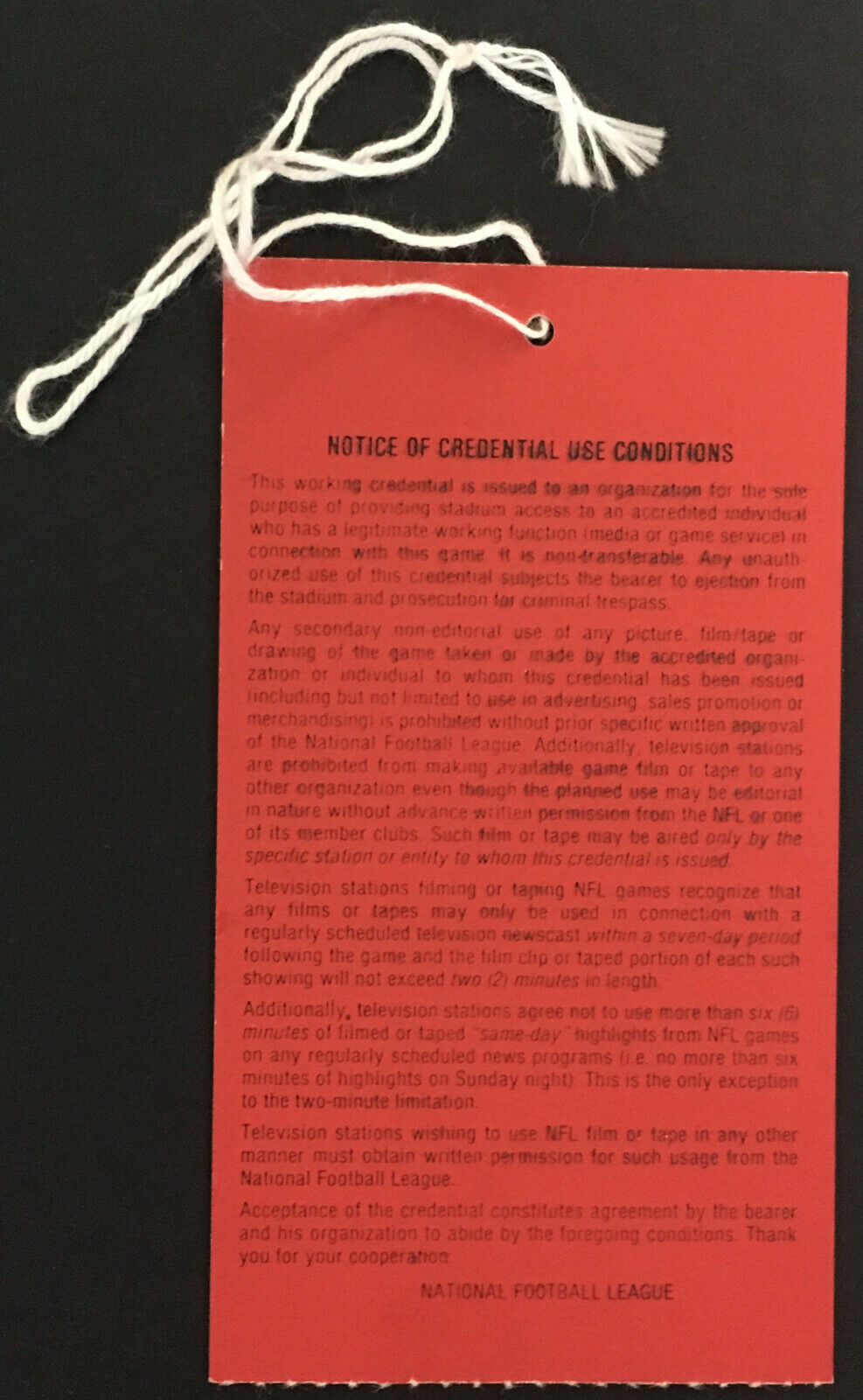 - September 3, 1982 NFL football working press pass for the Kingdome Stadium, Seattle