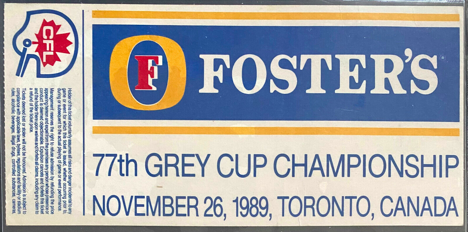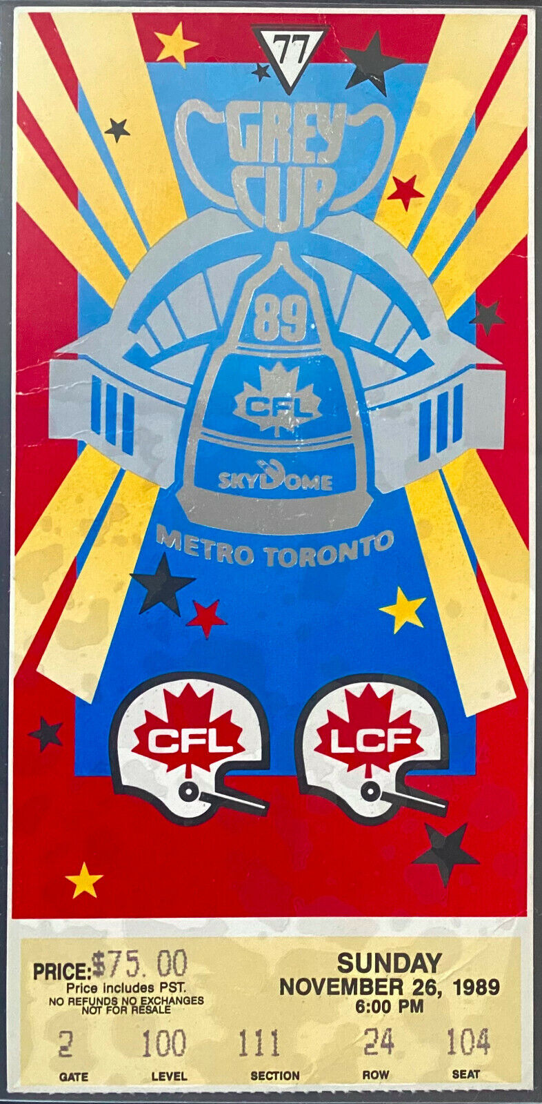 1989 CFL Grey Cup Ticket SkyDome Saskatchewan vs Hamilton icert Authenticated
