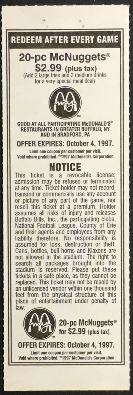 - 1997 NFL football ticket at Rich Stadium, New York