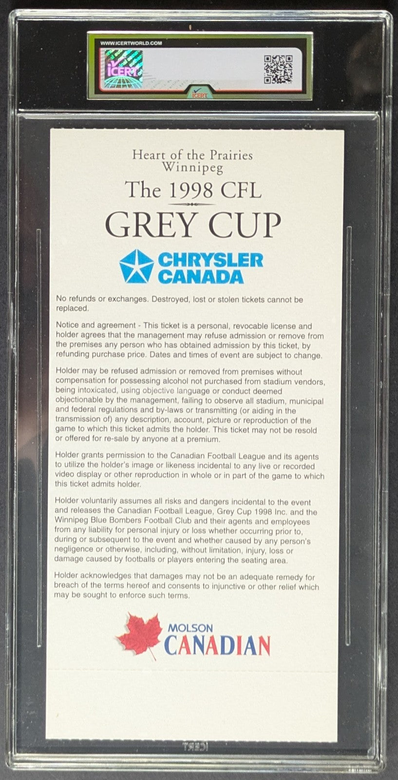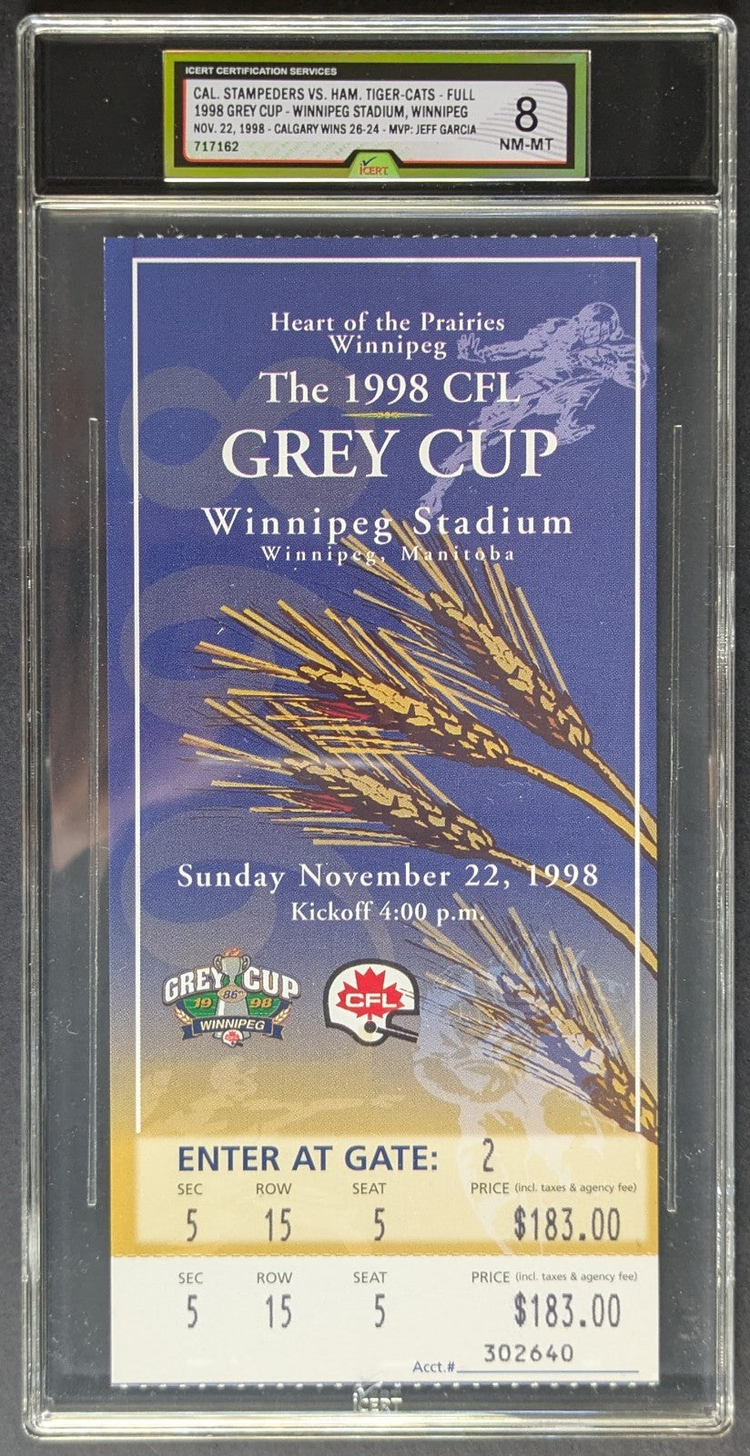 - November 22nd, 1998 Grey Cup Ticket
