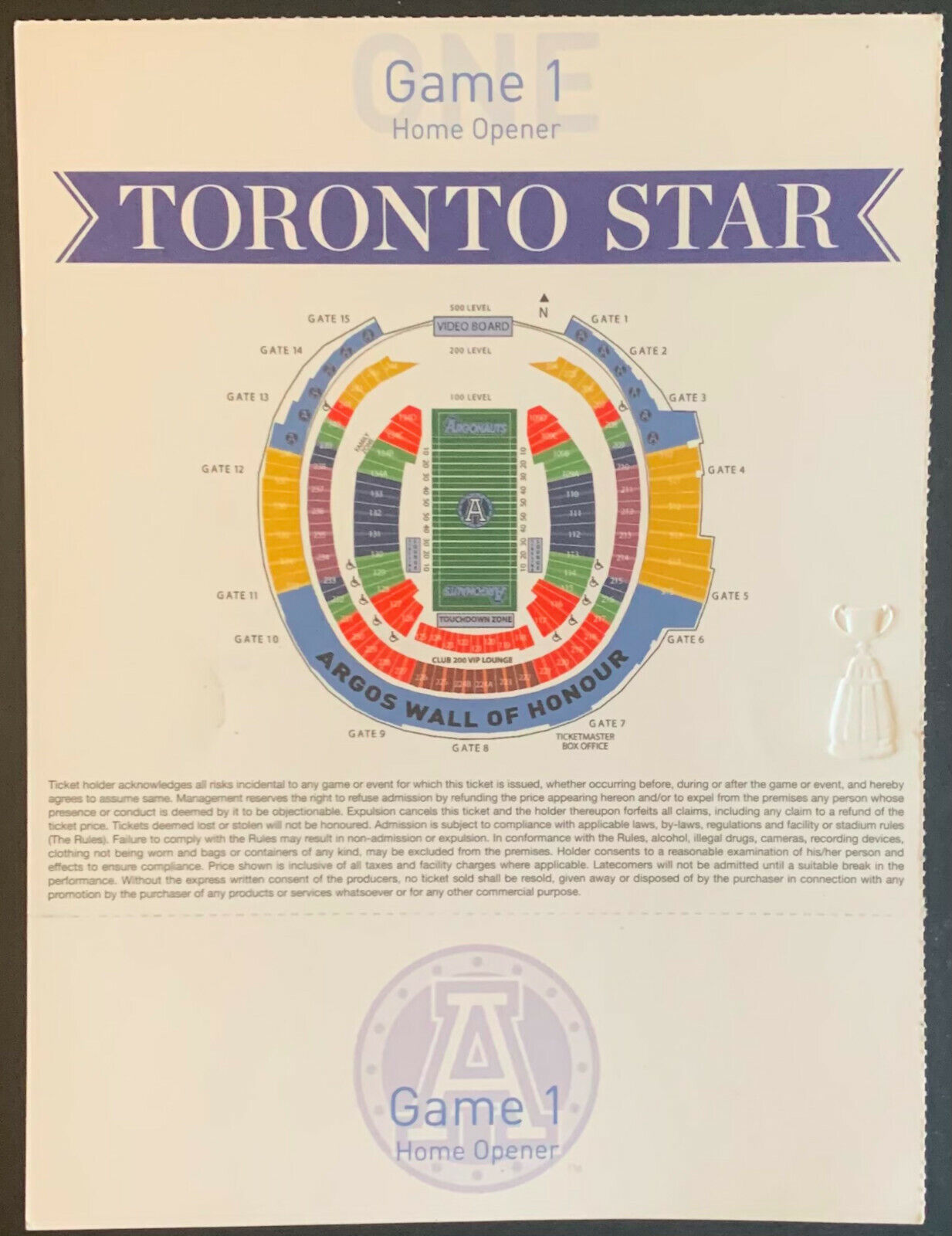 - 2007 Rogers Centre Toronto Argonauts CFL home opener commemorative ticket
