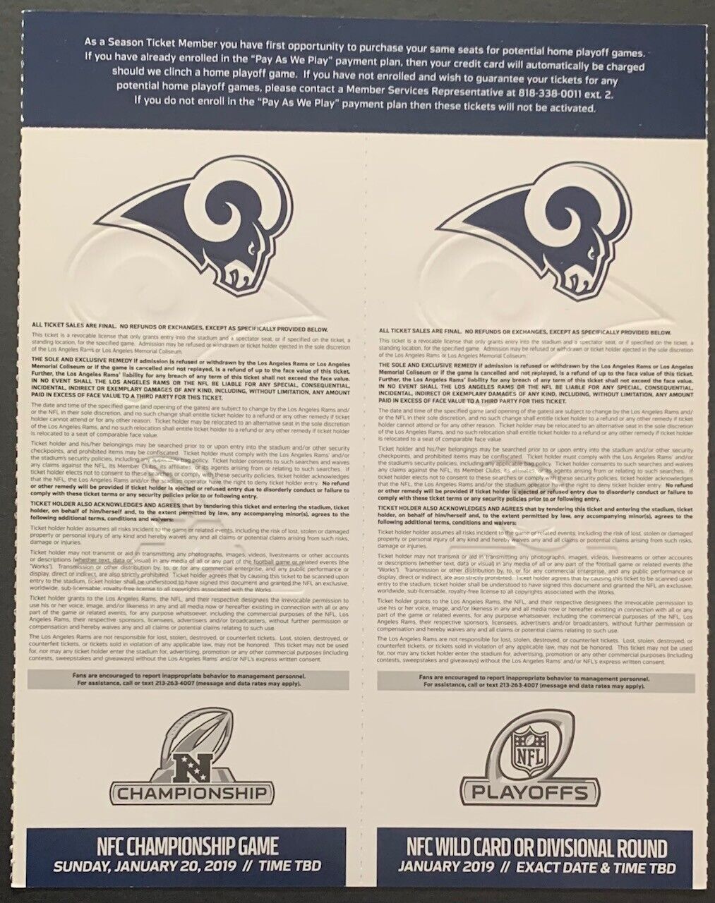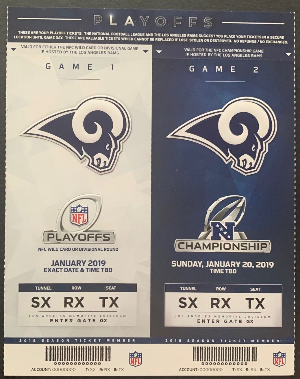 - 9 tickets each feature hi-res images of 2 players. 2 other tickets are for the 2018 NFL Playoffs and NFC Championship game
