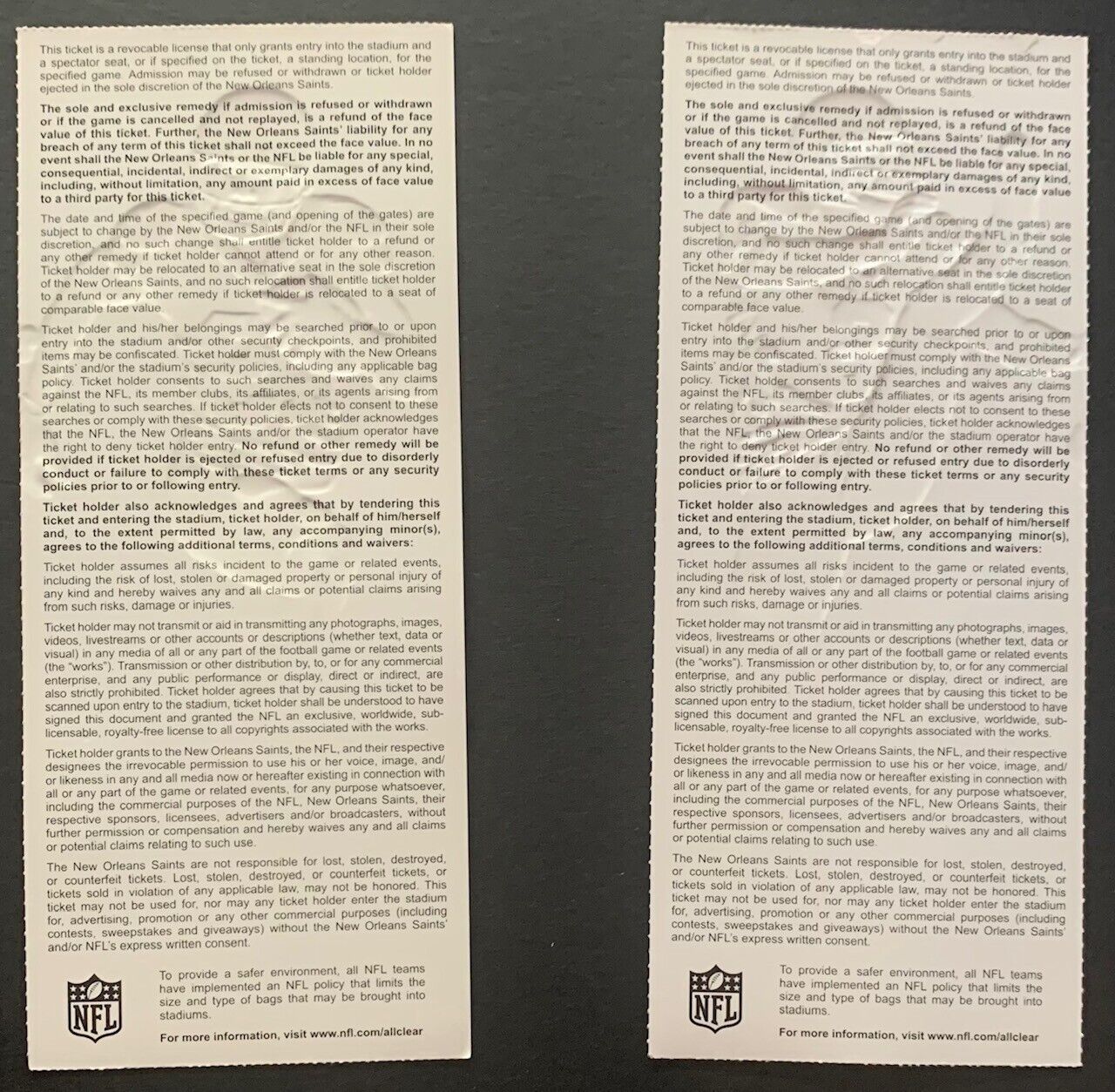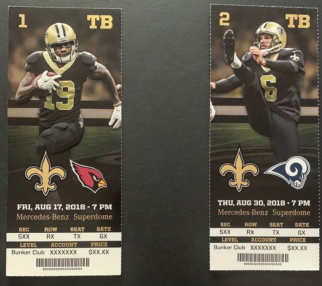 2018 New Orleans Saints Proof Tickets NFL Football Mercedes-Benz Superdome Brees