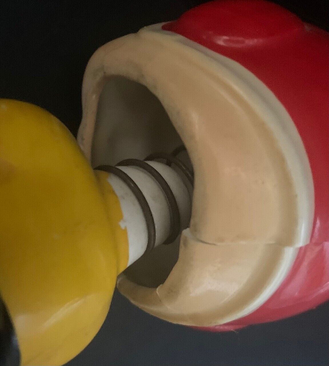 - Vintage circa 1960 piggybank. Football player bobblehead sitting on a China football. Cracks in the players head have been carefully repaired