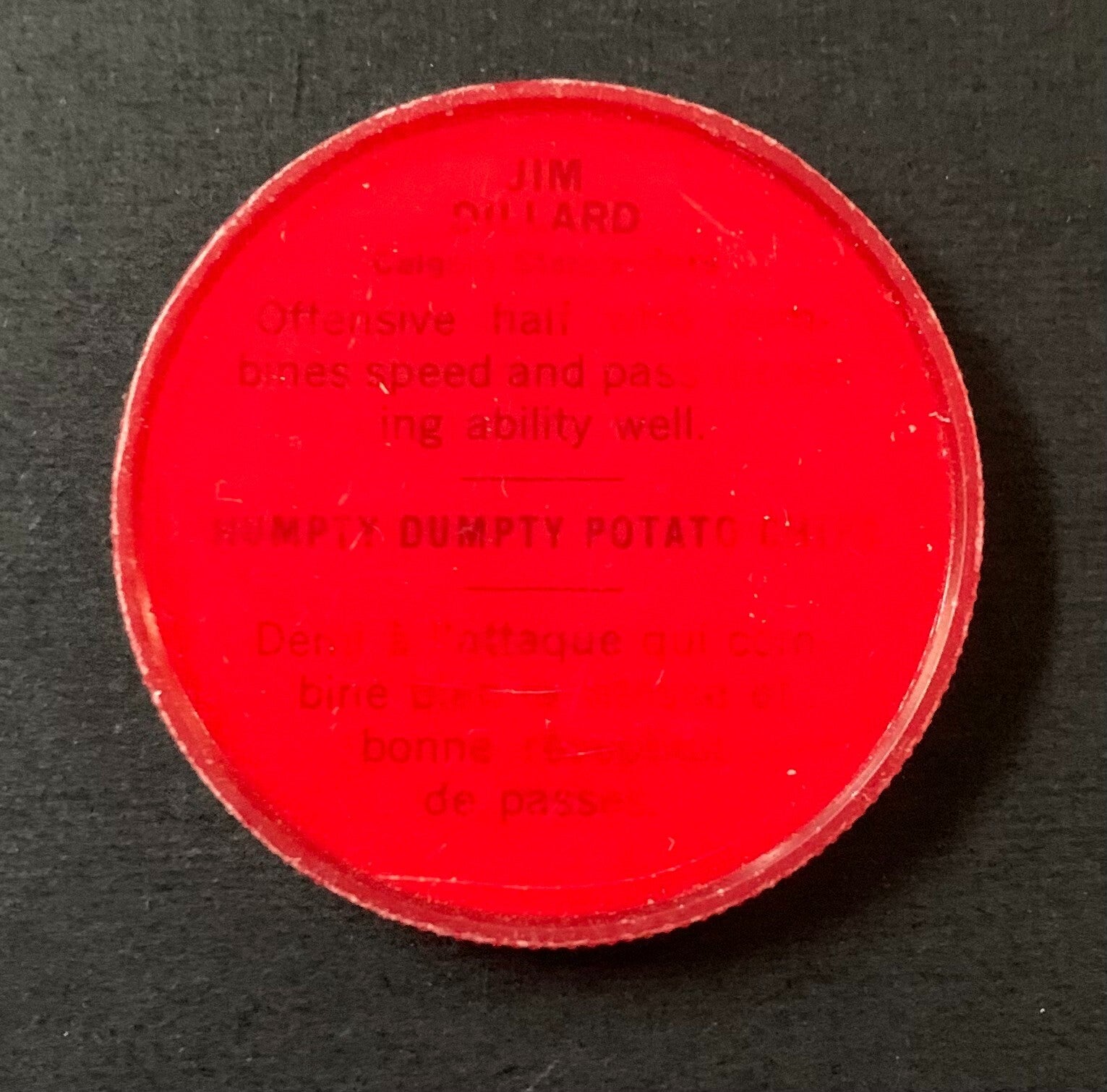- In 1963, the Canadian Football League contracted to have plastic player coins inserted in brand name potato chip bags including those put out by Nalley's, Hunter's, Krun-Chee, and Humpty Dumpty (printed in French and English). Other variations include (No Company name) Anonymous Back (English Only) and Anonymous Back (Bilingual). In total, there were eight teams represented with 20 coins per team.