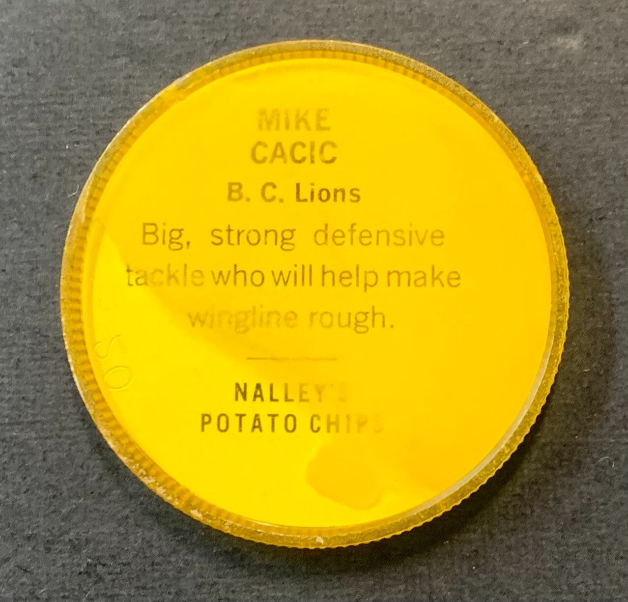 - 1963 Nalleys CFL Coin #155 Mike Cacic BC Lions Nalley's Football