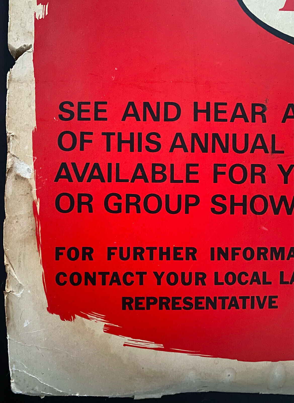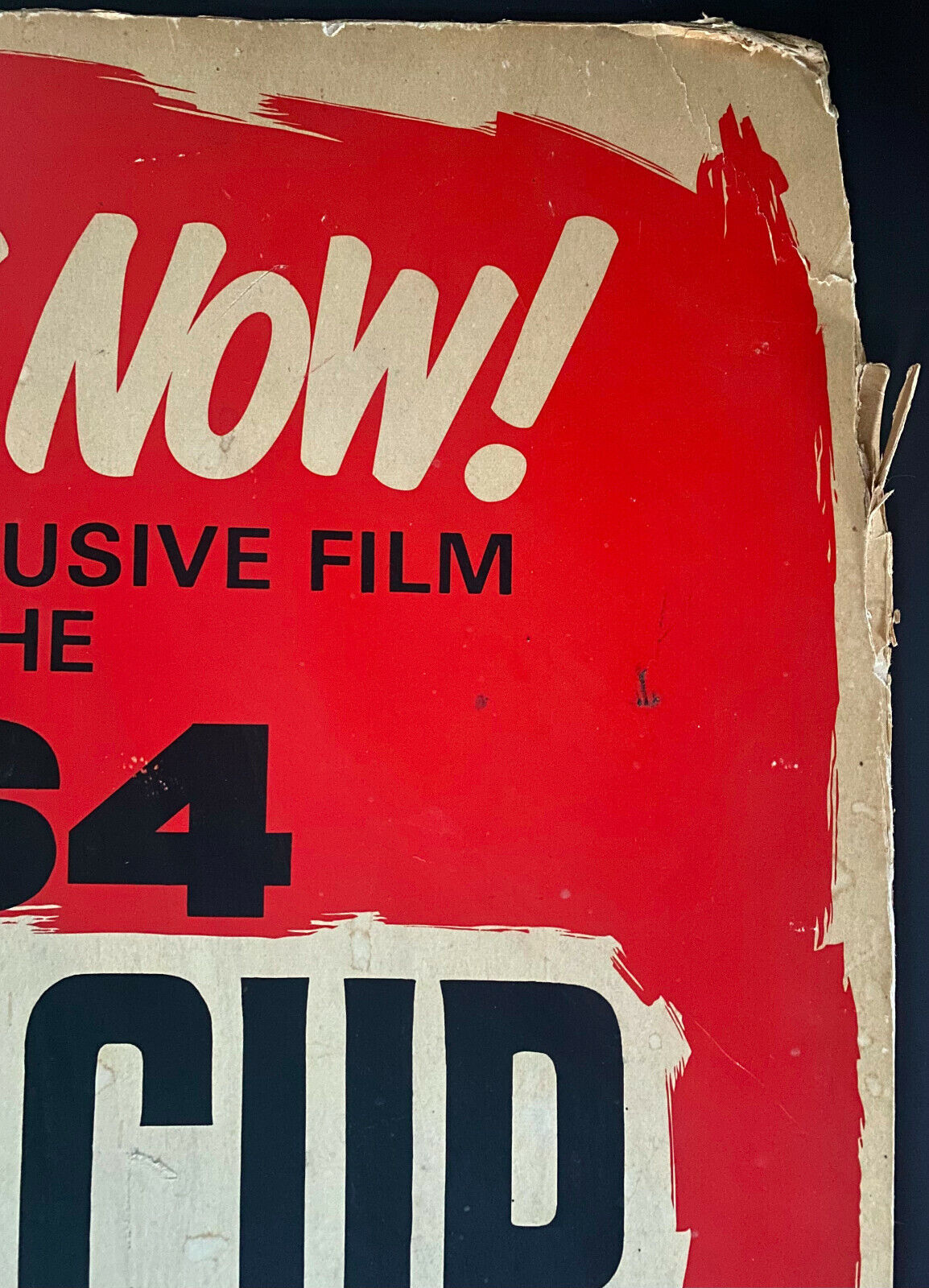 - Good condition; notable water damage along the bottom as well as edgewear throughout including some tearing and creasing. Top corner also shows some light water damage. Image itself is very presentable with only some minor scratching although the booking forms in the bottom right corner have been removed with some residue.