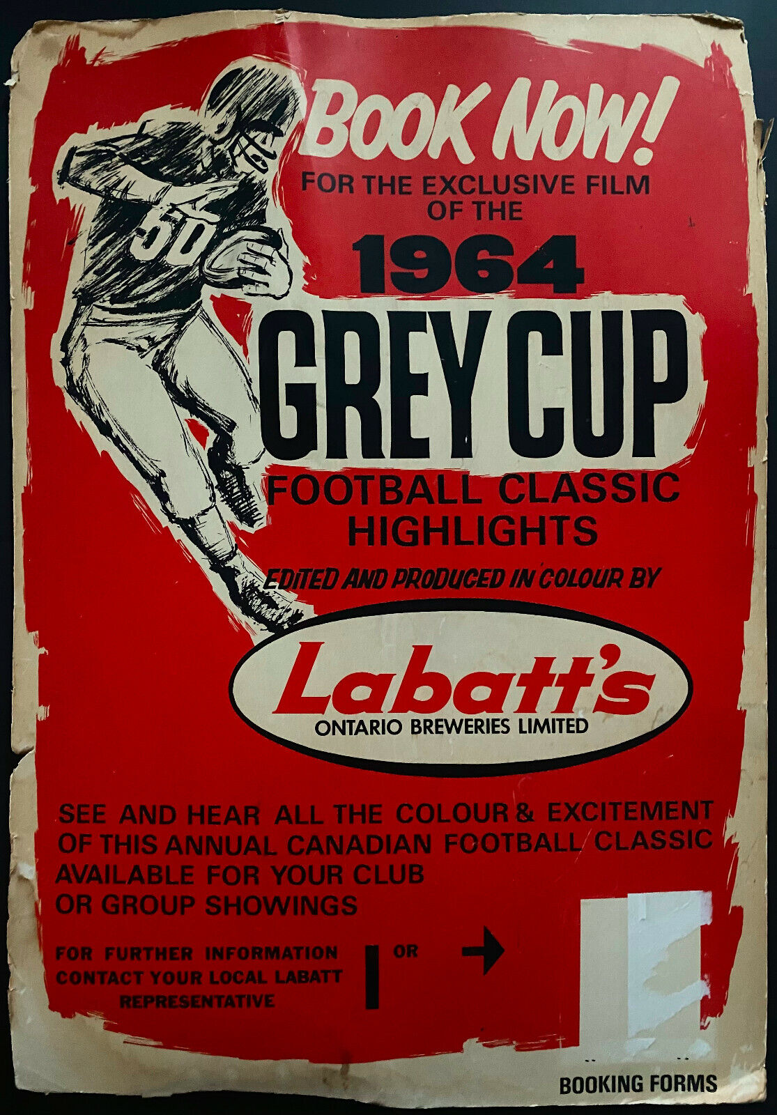 - 1964 Grey Cup Football Classic Highlights CFL advertising sign produced by Labatt's Breweries