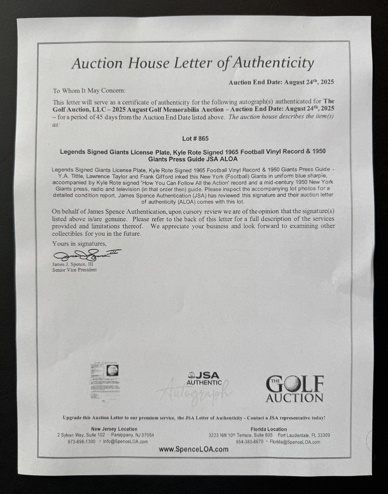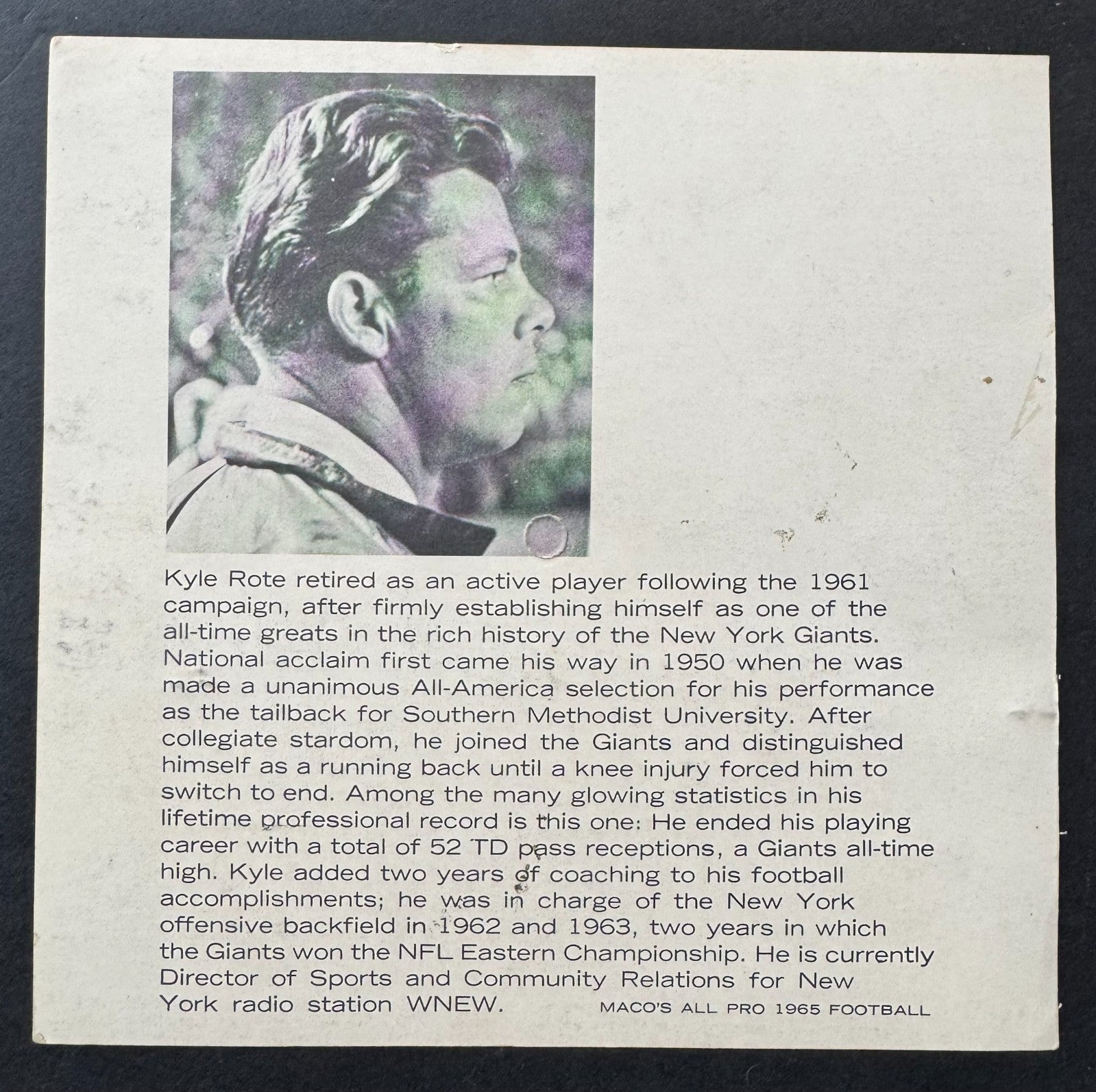 - 1965 all pro Kyle Rote signed autographed NFL promotional record