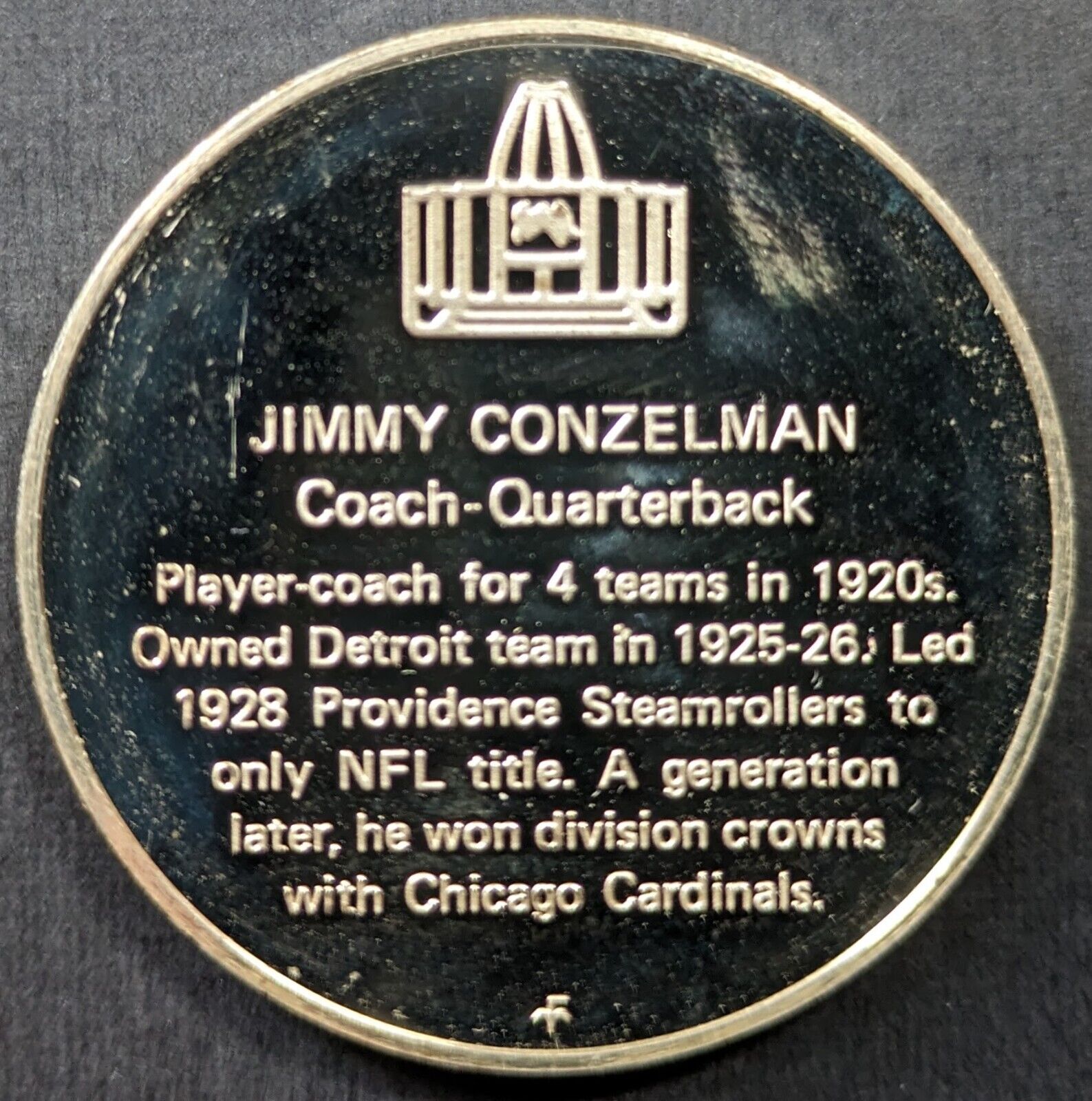 - Jimmy Conzelman Pro Football Hall Of Fame Medals issued in 1972 by Franklin Mint