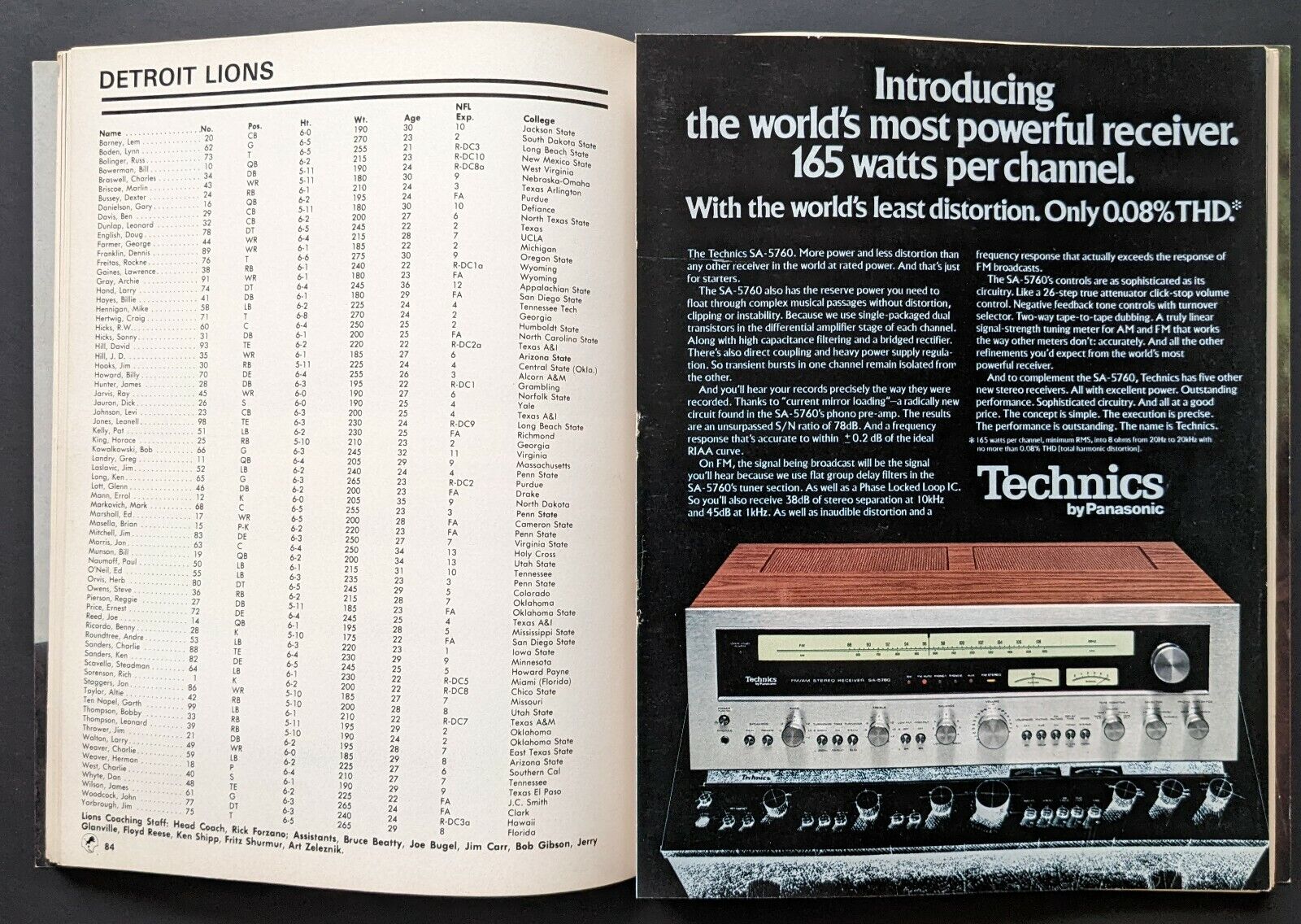 - July 31, 1976 Pro! Magazine Detroit Lions vs. Buffalo Bills Program with Ticket Stub