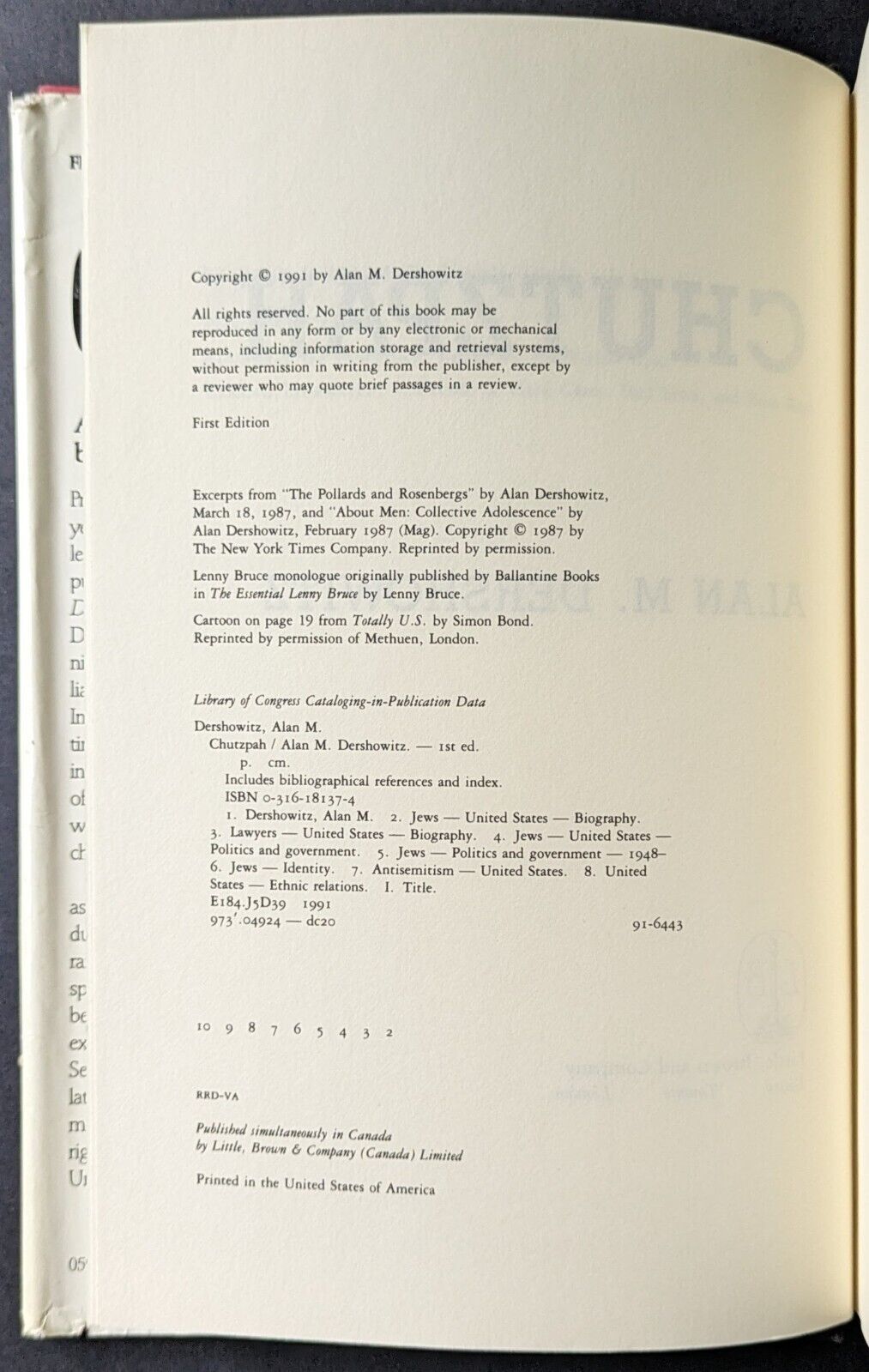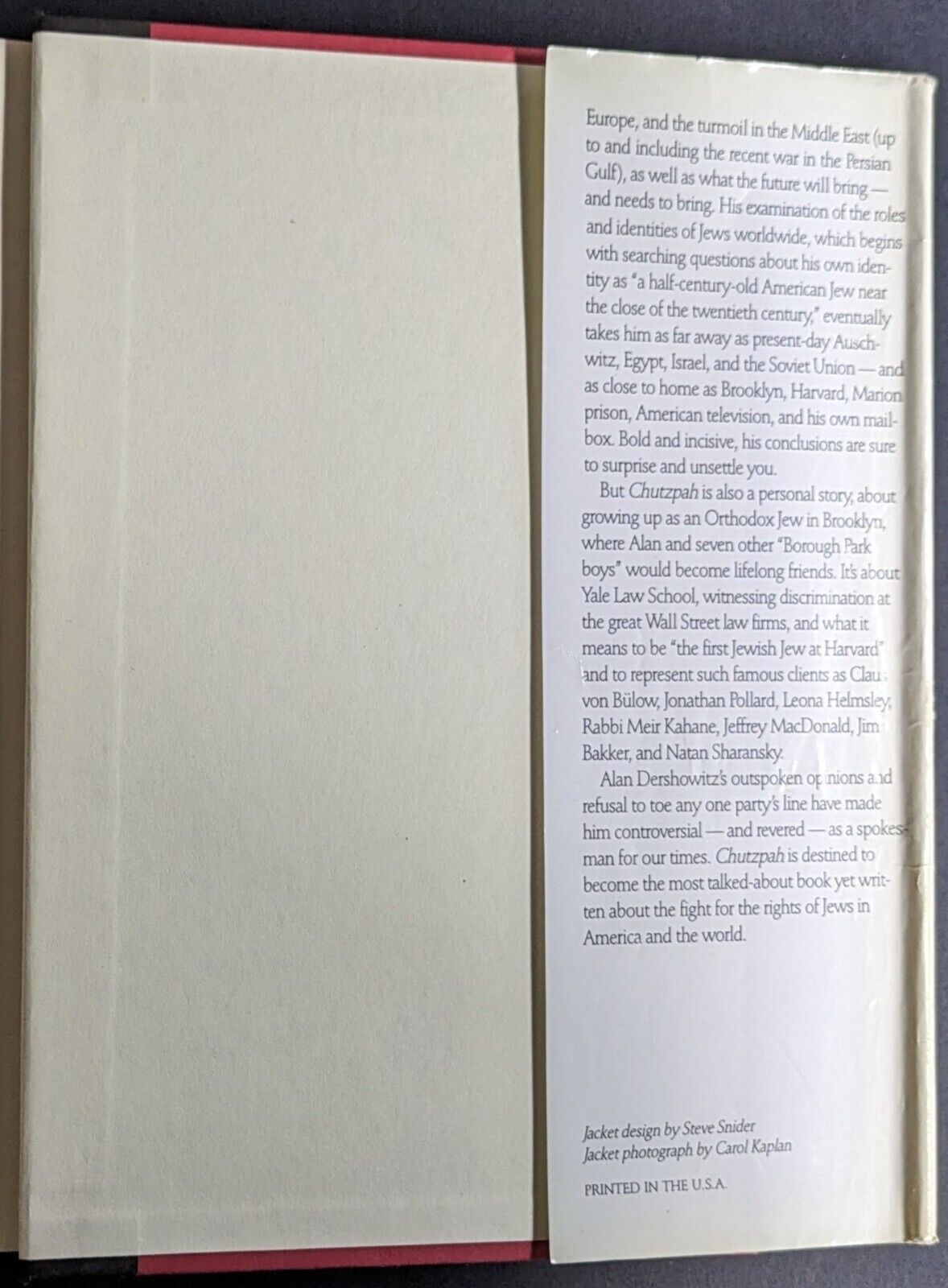 - 1991 Alan Dershowitz "Chutzpah" autographed hardcover book