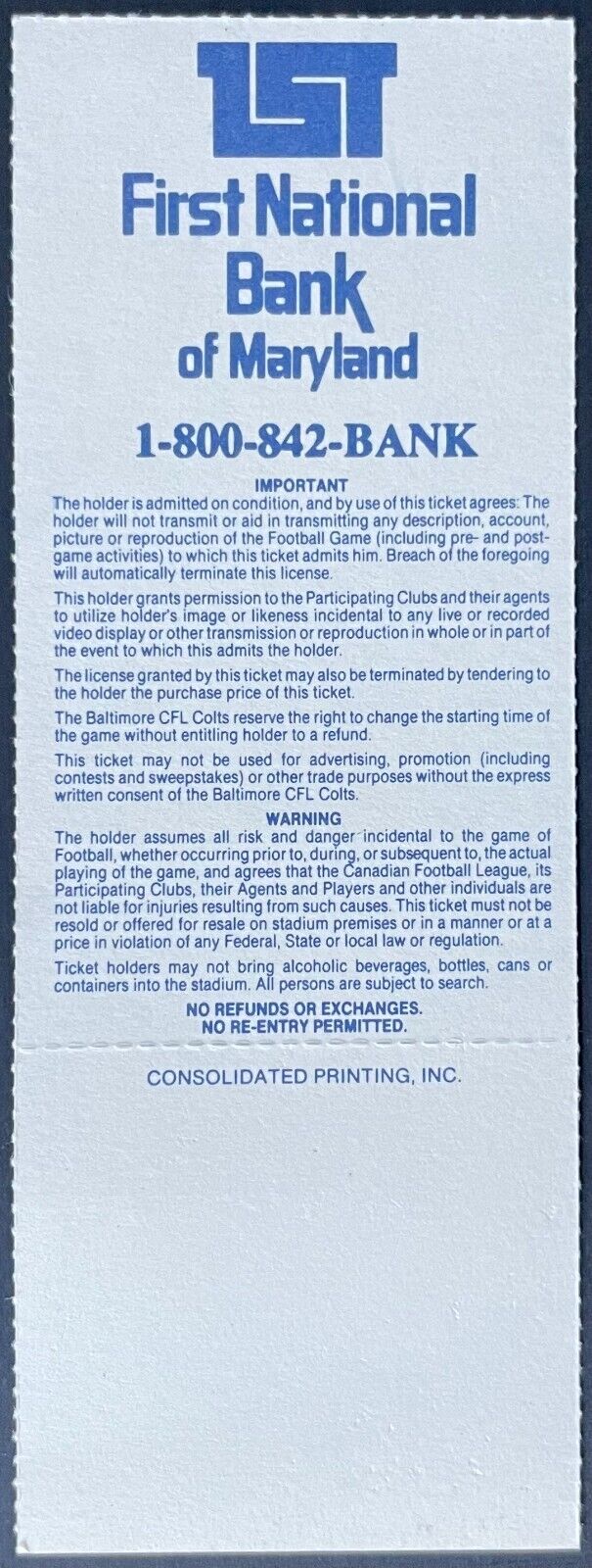 - 1994 Las Vegas Posse v. Baltimore Colts CFL Unused Ticket