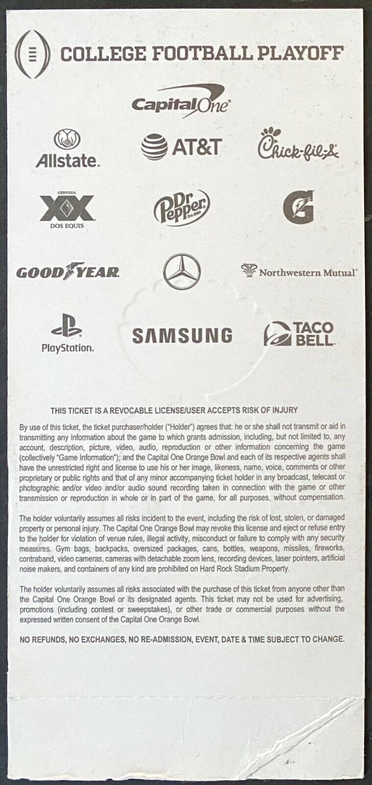 - December 29, 2018 ticket for NCAA Football Playoff Semi-Final between the University of Alabama Crimson Tide and University of Oklahoma Sooners