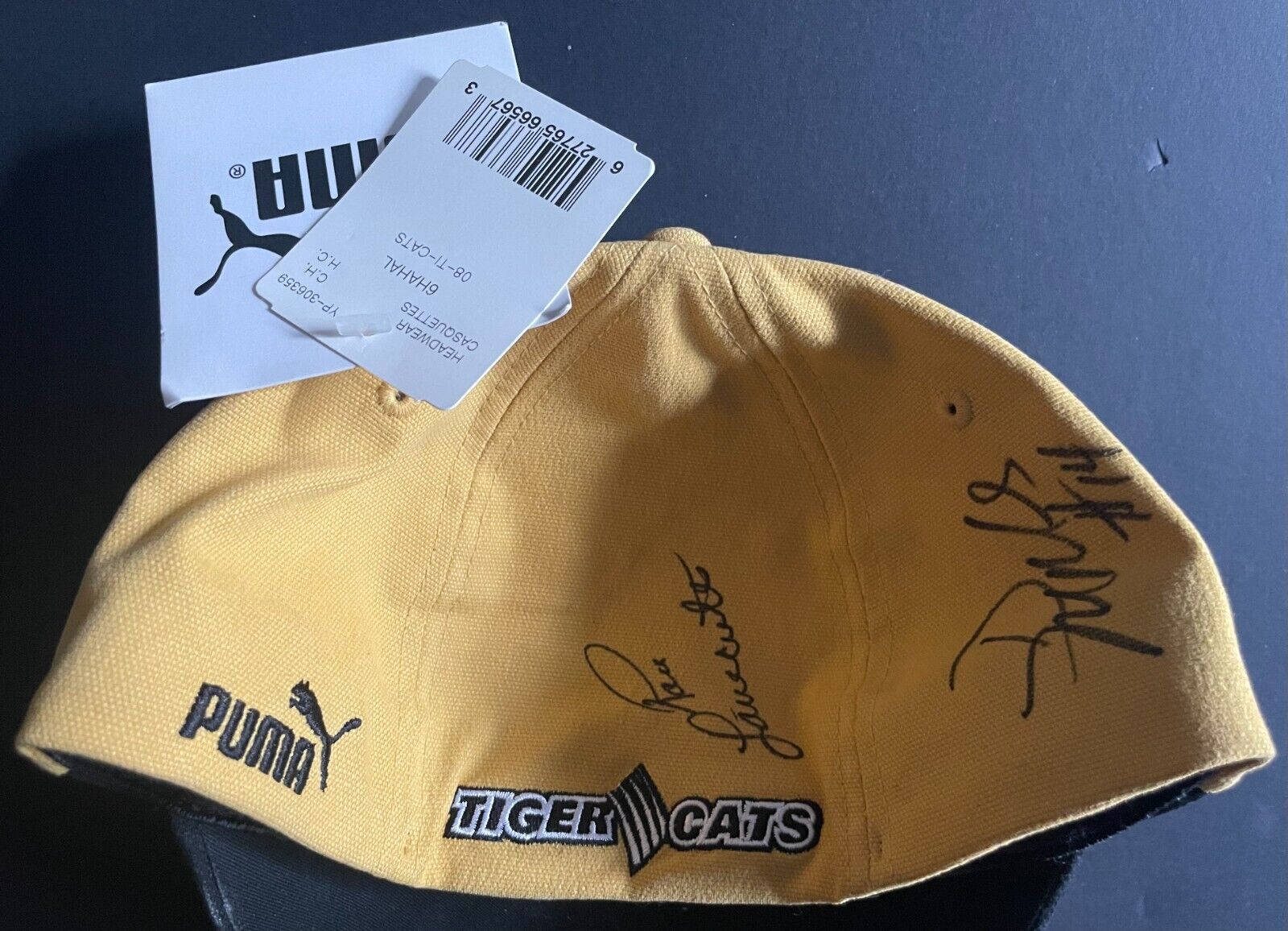 • Hamilton Tiger-Cats Puma Flexfit baseball cap signed by 1999 Grey Cup champion QB Danny McManus and coach Ron Lancaster