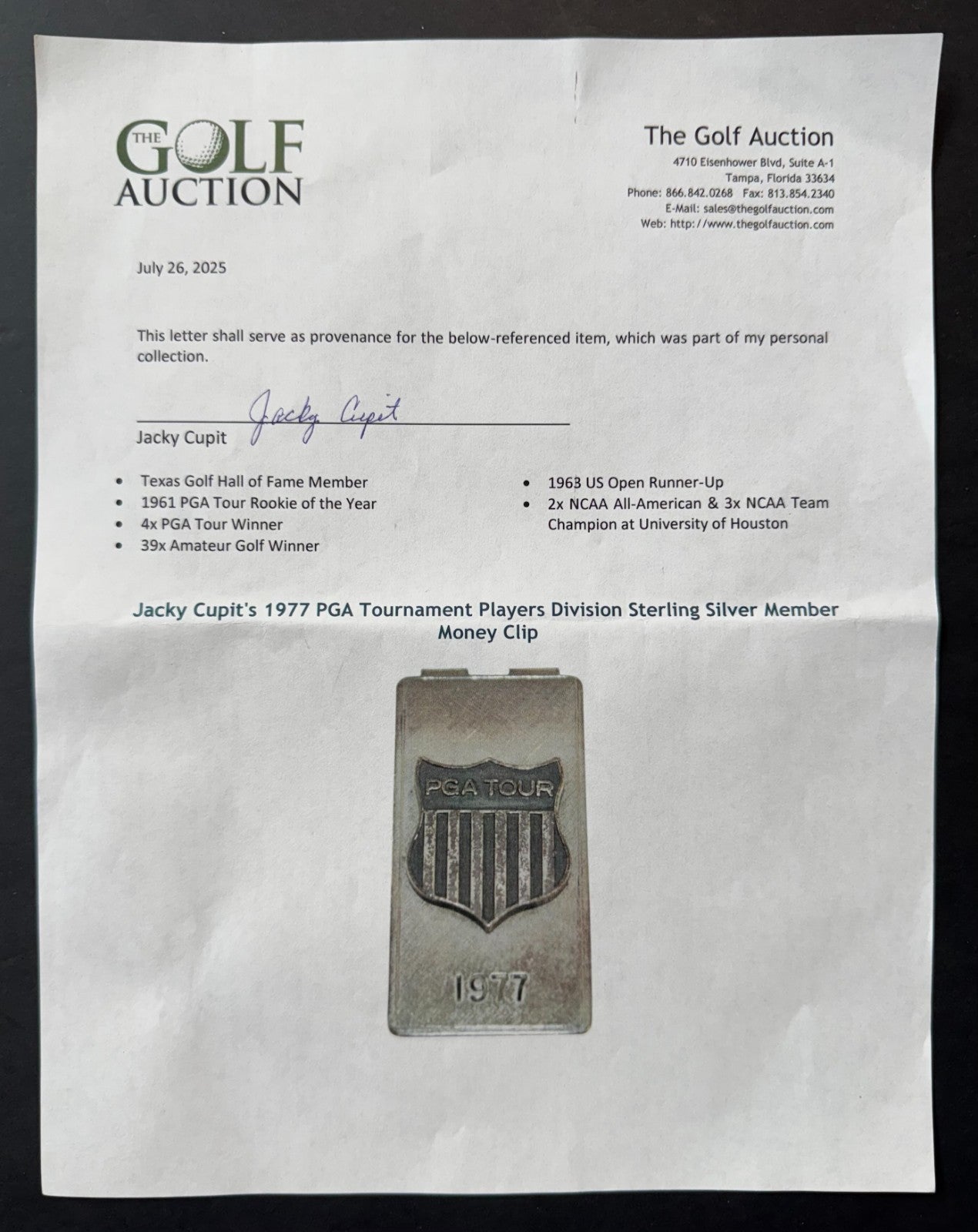 - Money clip issued to PGA Tour pro golfer Jacky Cupit. Each clip weighs 8 ounces.