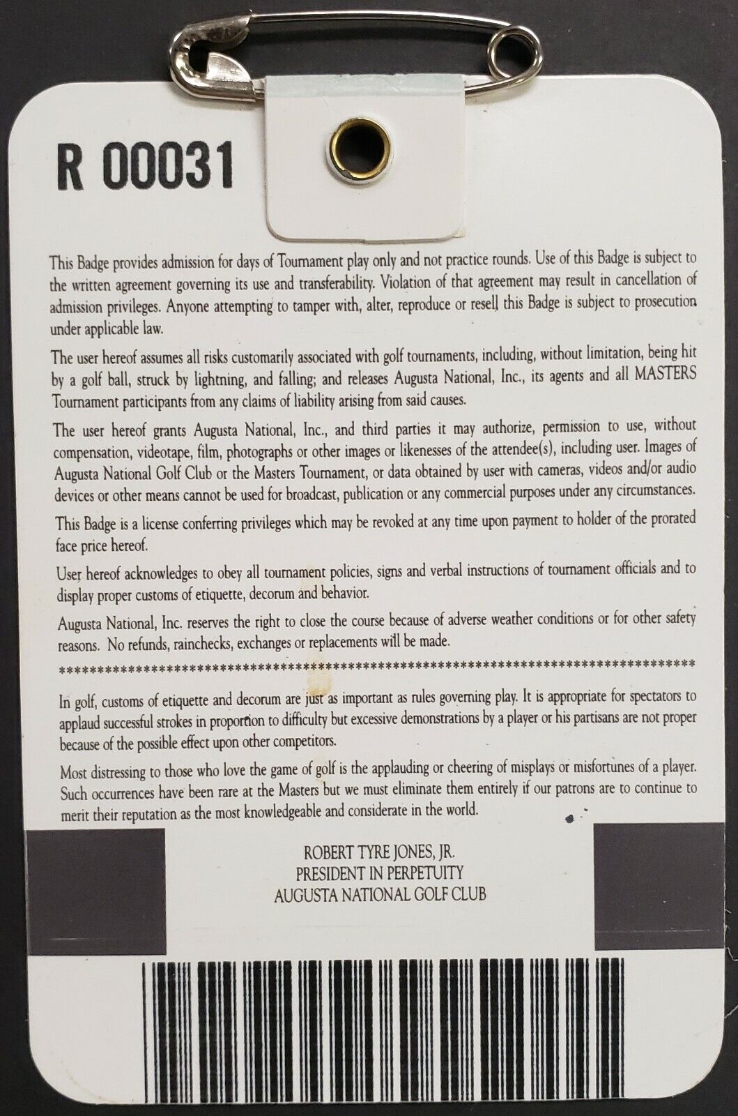 - April 5-8, 2001 Historic Gold Masters Badge #00031 (Low Number)
