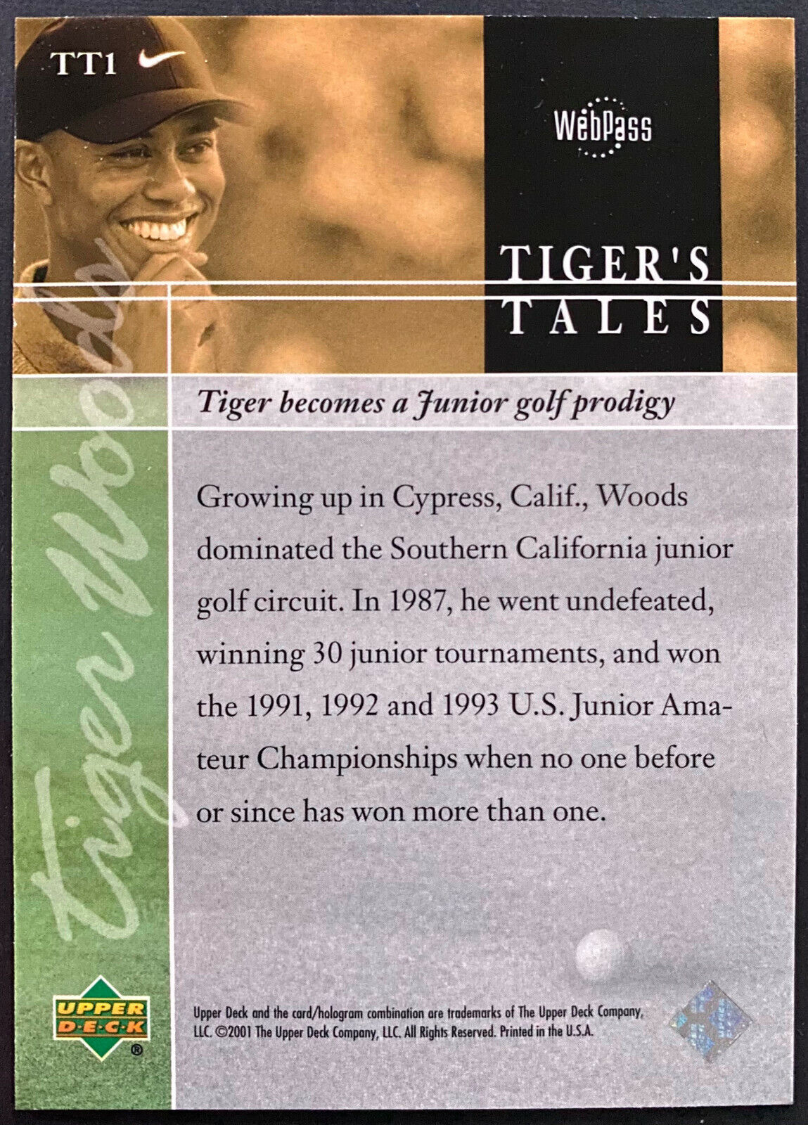 - Full complete 30 card set of 2001 Upper Deck Tiger Woods Tiger Tales
