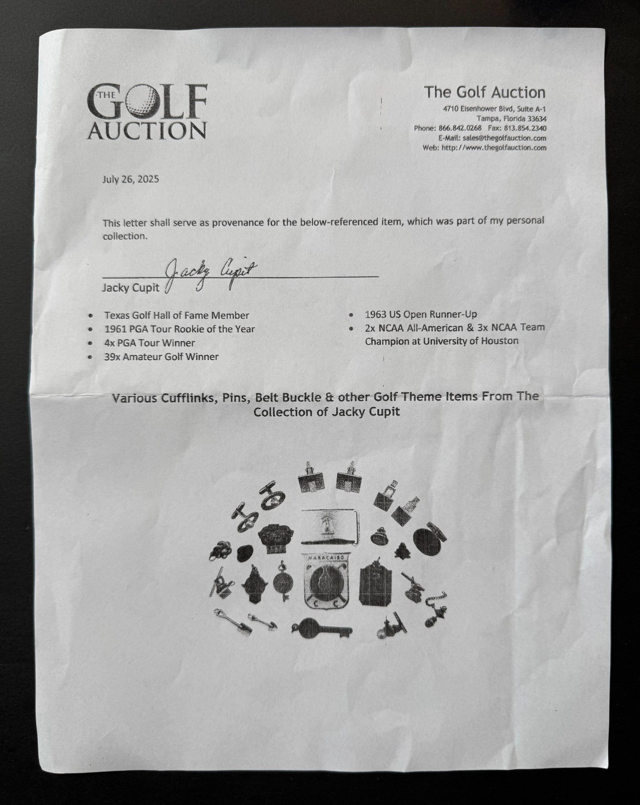 Circa Early 1960s PGA Tour Belt Buckle From Player Jacky Cupit LOA