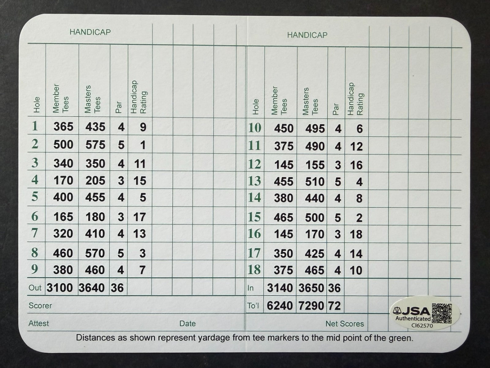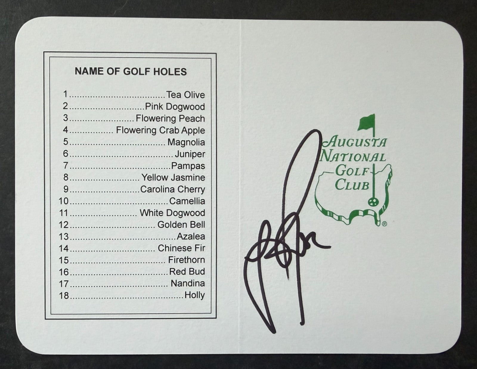 - Signed Augusta National Golf Club scorecard