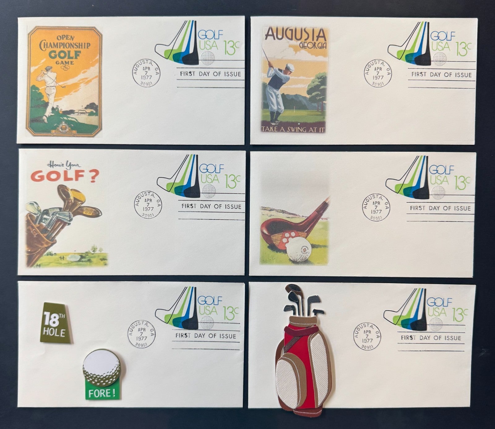- Lot of 20 different first day covers. All postmarked in Augusta, Georgia on April 7, 1977 during the first round of the Master Tournament Golf Tournament