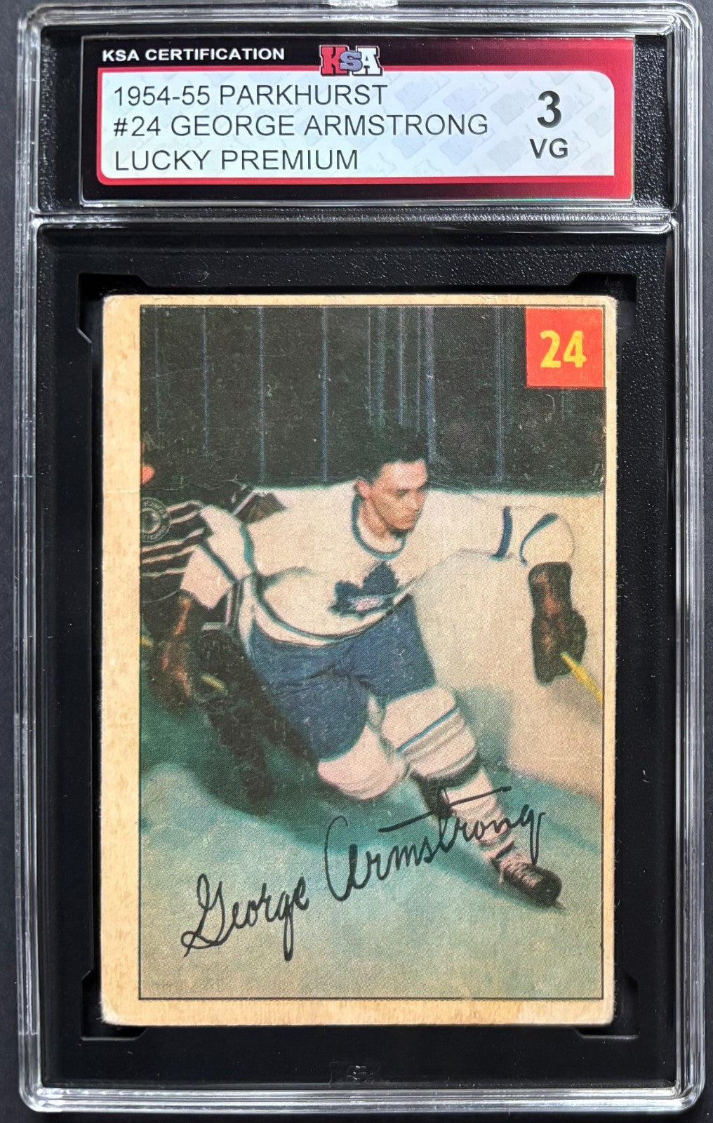 1954-55 Parkhurst #24 George Armstrong Hockey Card KSA 3 VG Leafs Lucky Premium