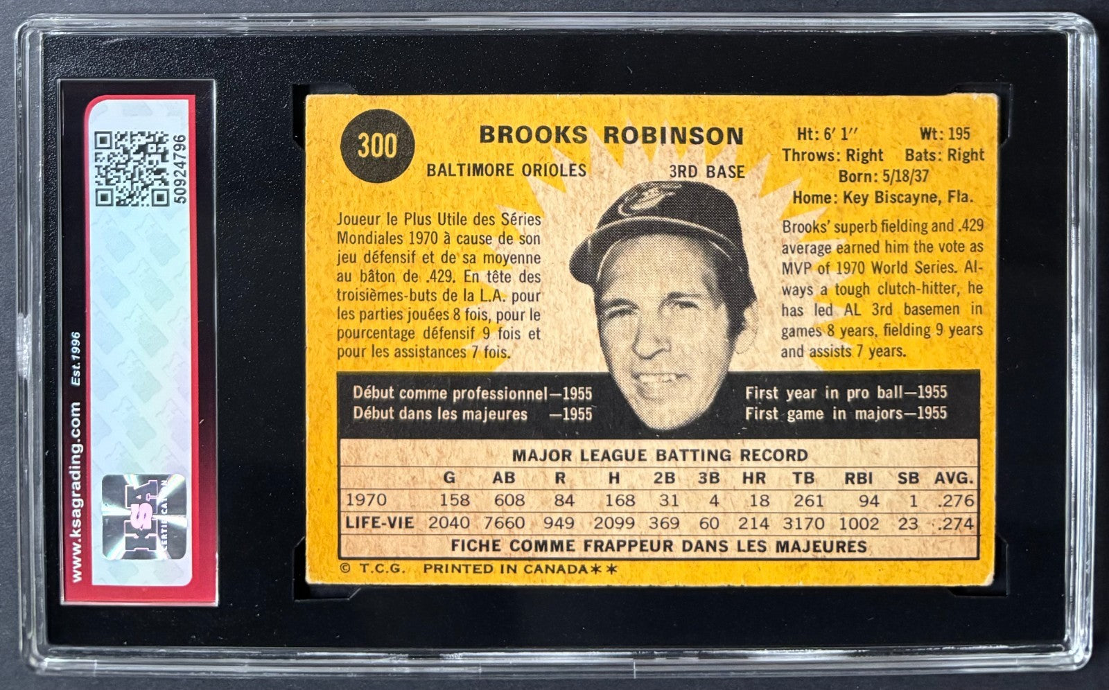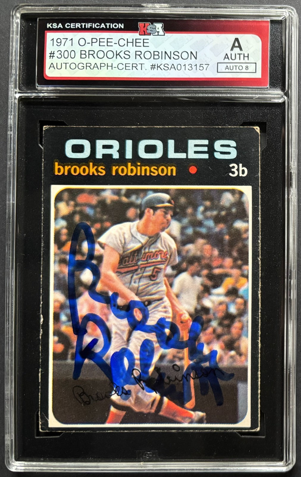 1971 O-Pee-Chee OPC #300 Brooks Robinson Signed MLB Baseball Card KSA Auto 8