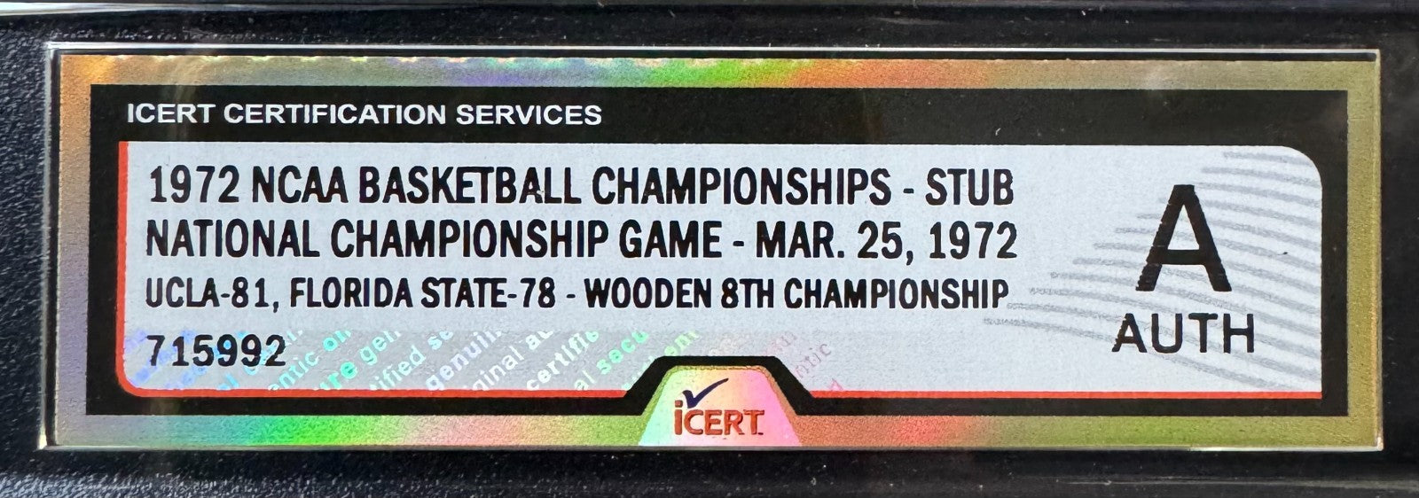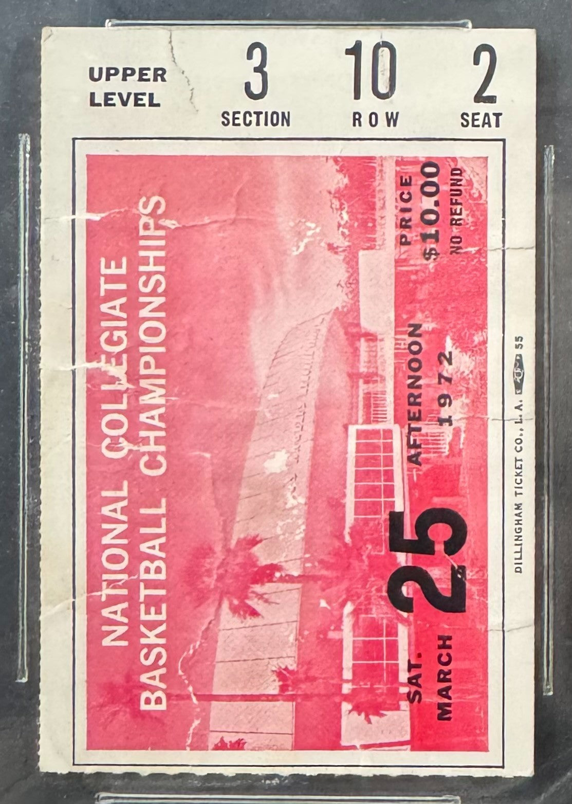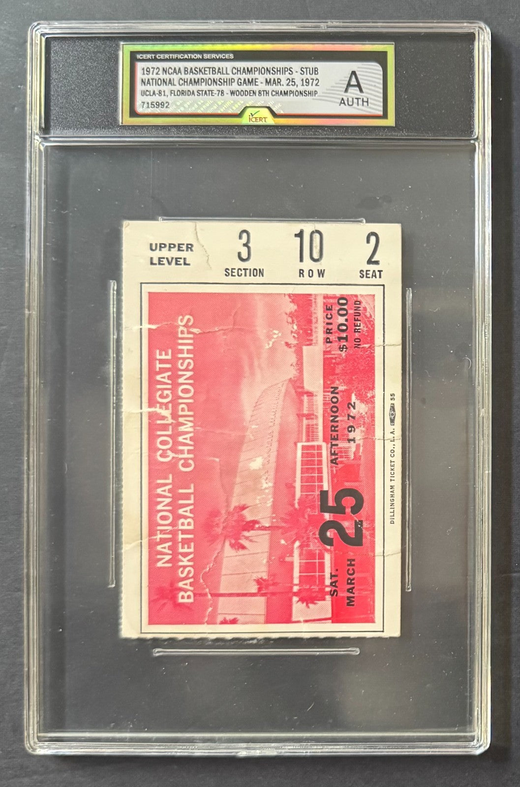 1972 NCAA Basketball Championships Final Stub UCLA Florida State Wooden iCert A