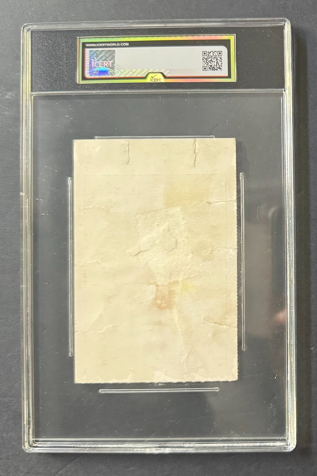 • Good condition; some notable creasing. Edges and corners are clean. Some discoloration and minor paper material loss on reverse