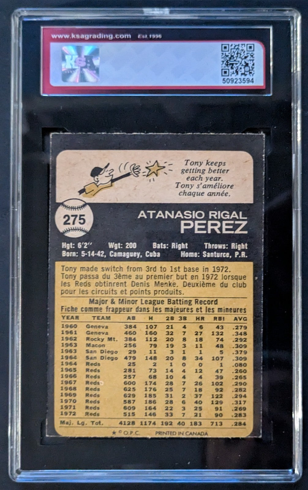 - 1973 O-Pee-Chee #275 Tony Perez Cincinnati Reds Baseball Card