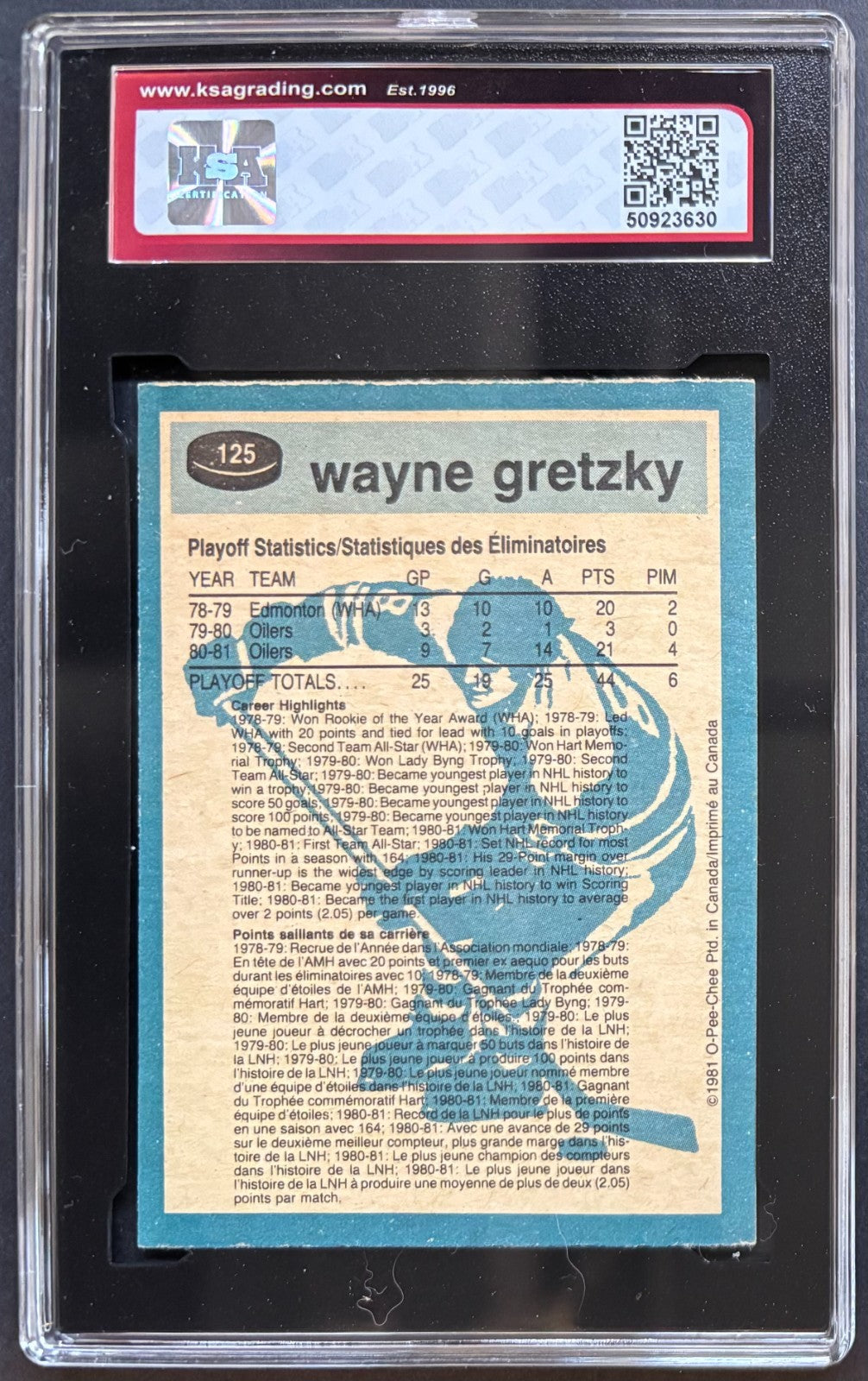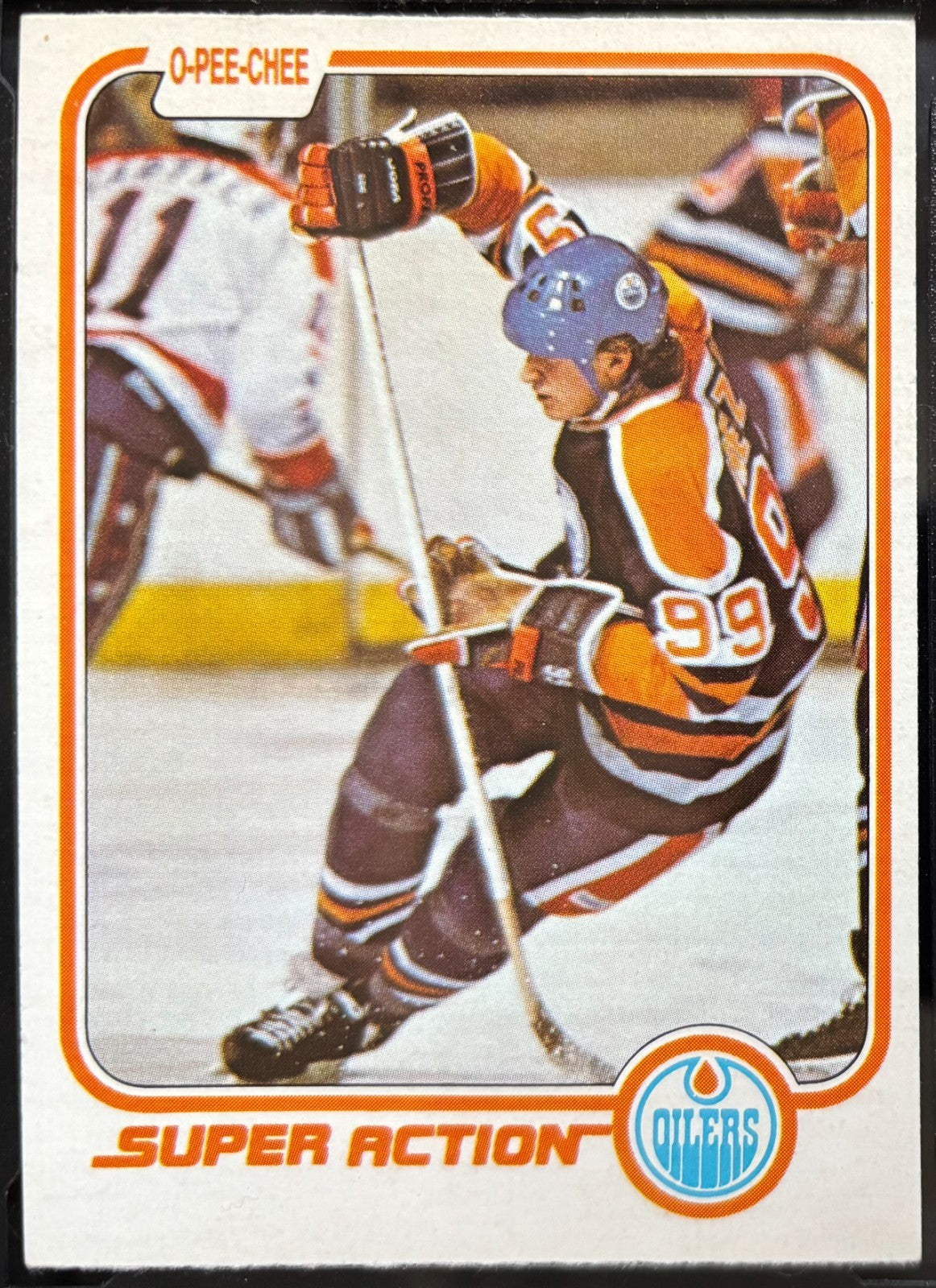 1981-82 O-Pee-Chee #125 Wayne Gretzky Super Action Oilers Hockey Card KSA 6.5