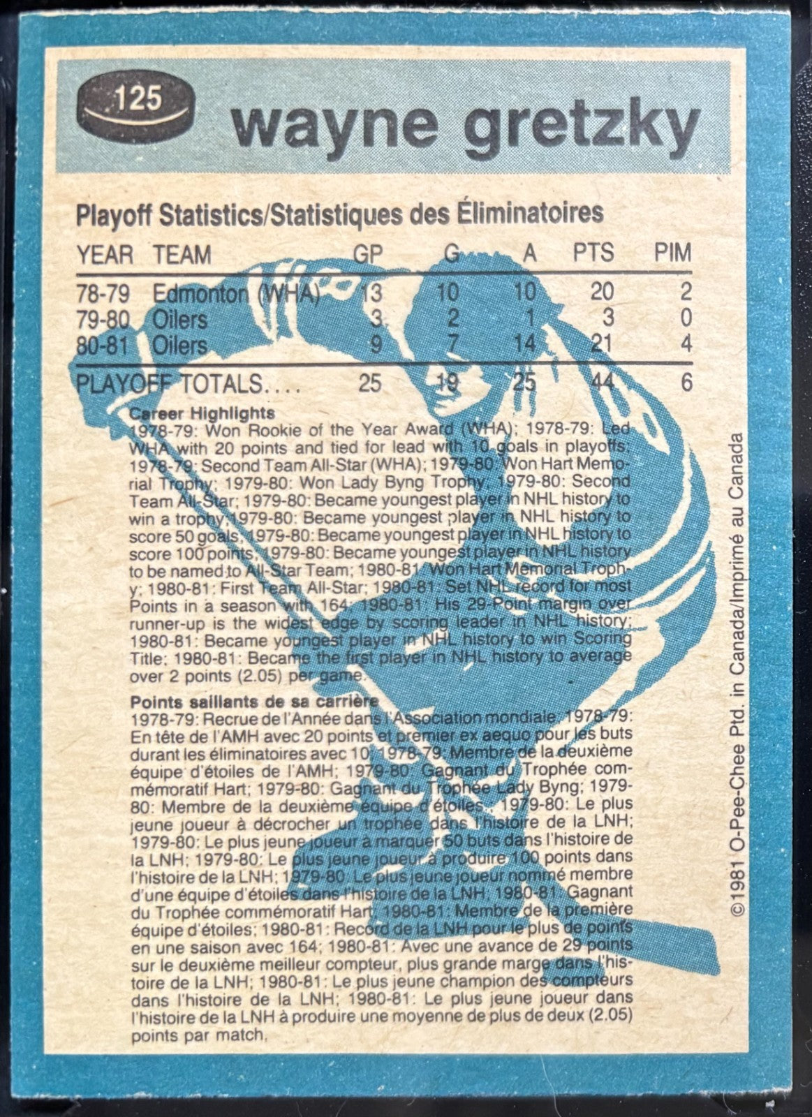 • 1981-82 O-Pee-Chee (OPC) #125 Wayne Gretzky vintage Oilers hockey card