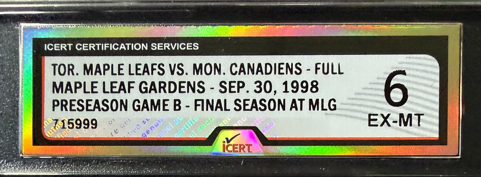 - September 30th, 1998 Toronto Maple Leafs Vs Montreal Canadiens Full Ticket