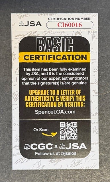 - Excellent condition; new with tags. One faint spot of discoloration on left shoulder otherwise little to no signs of visible handling wear. Autograph presents well with no fading, smudging or bleeding
