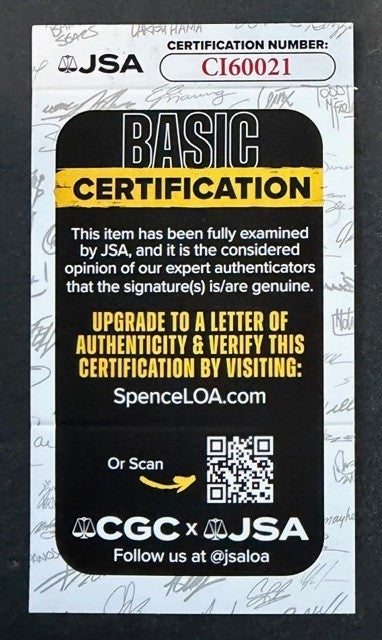 - Excellent condition; some faint spots of discoloration on bottom of second #1 do not affect autograph - otherwise little to no signs of visible handling wear. Autograph presents well with no fading, smudging or bleeding