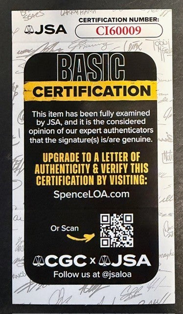 - Excellent condition; new with tags. Some faint staining on left sleeve otherwise little to no signs of visible handling wear. Autograph presents well with no fading, smudging or bleeding