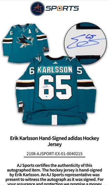 - Erik Karlsson signed San Jose Sharks Adidas NHL hockey jersey