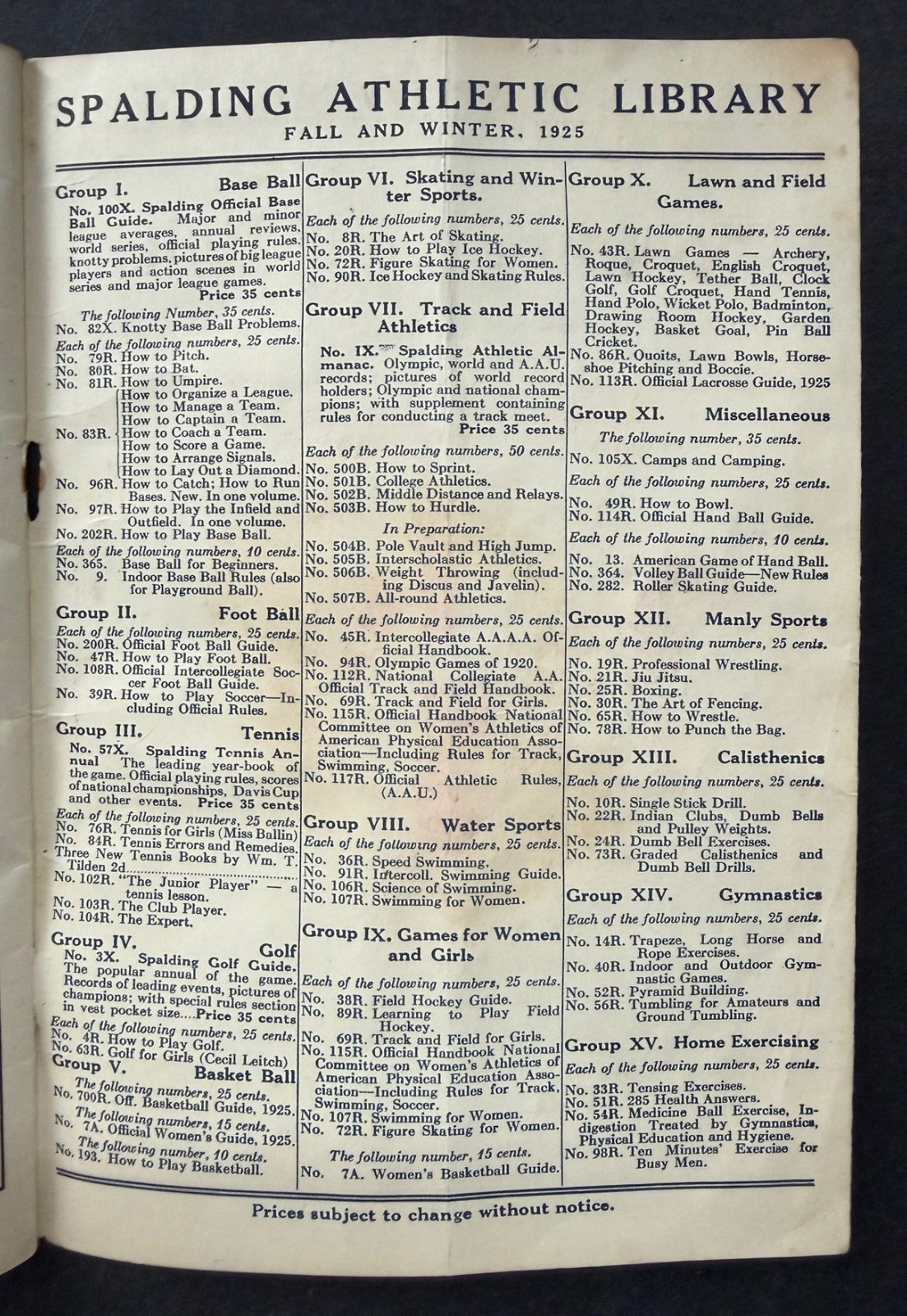 1925 Spalding Canada Fall + Winter Athletic Goods Catalogue A.G. Spalding Bros.